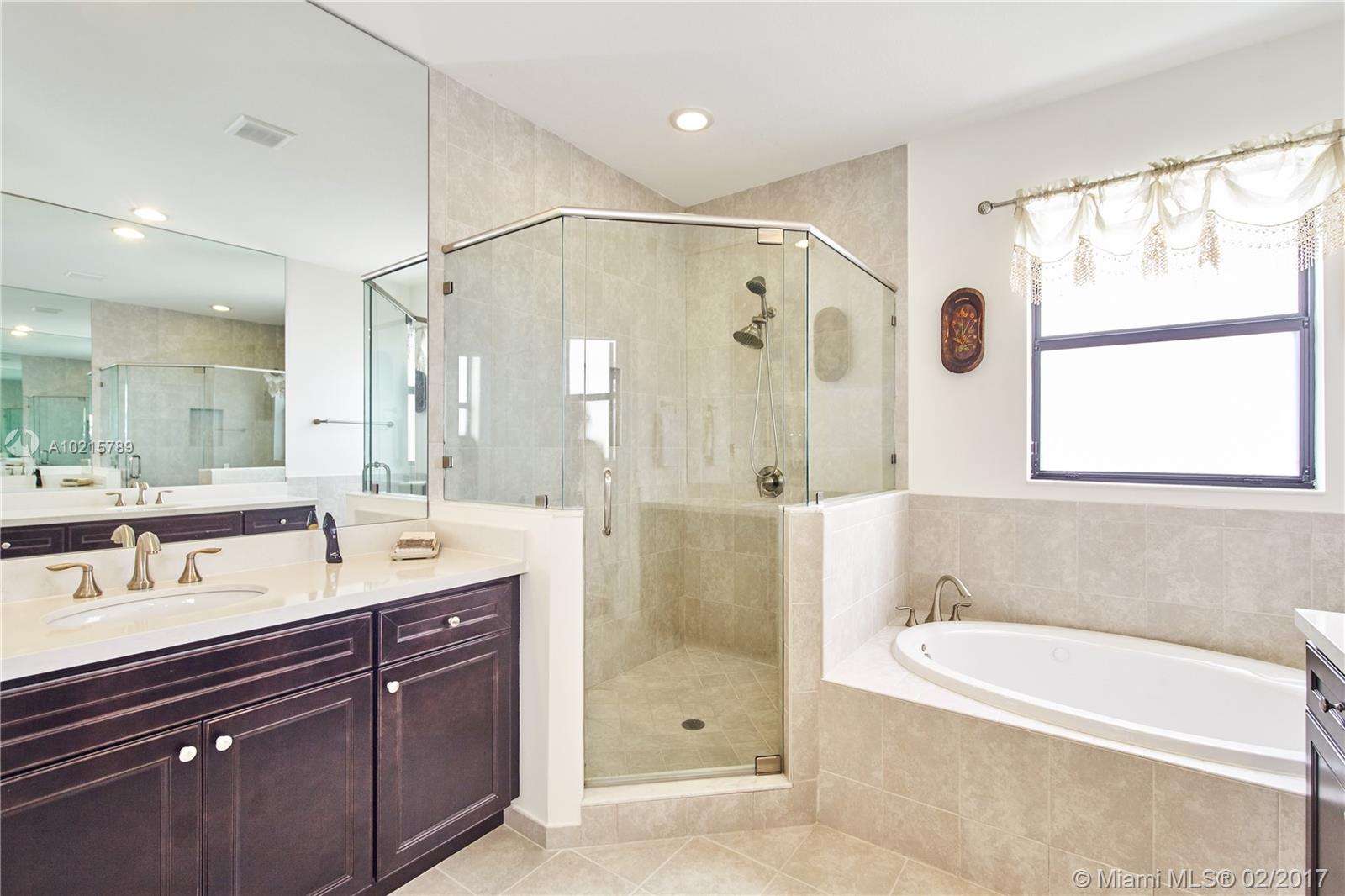 Grand Bay North at Doral...Built NEW in 2016 with MANY Up-Grades! Beautiful eat-in gourmet kitchen with SS appliances, double oven, wine chiller, breakfast bar opens to family room. Large covered terrace with marble flooring sits off family room. Custom window treatments throughout. All impact doors and windows. A true must see!!! Guard Gated Community in Doral, close to Dolphin Mall, International Mall, Miami International Airport, Highways, Nova University, Florida International University, Ikea, Movie Theaters, public transportation, and Trump National Resort Doral Miami, which currently has 90 holes of golf and its signature course is the Blue Monster at Doral, spa with 33 treatment rooms. Grand Bay North at Doral will have a Word Class Club House to be completed this year!
