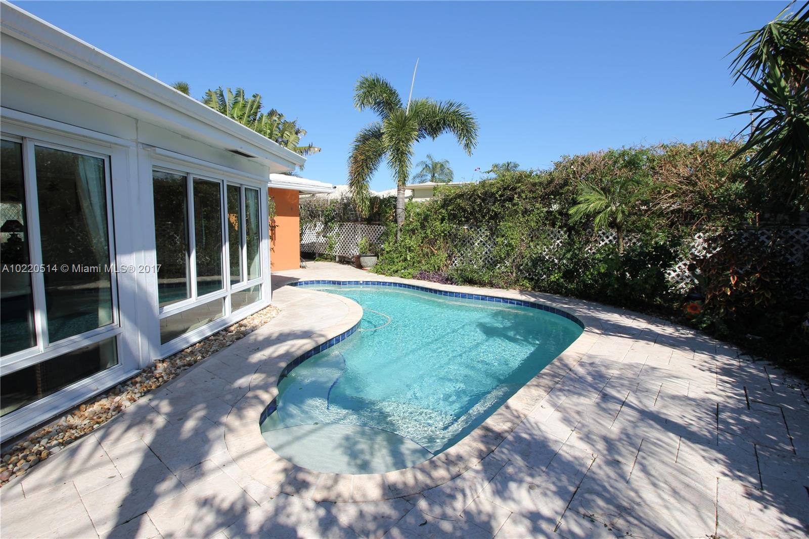Wonderful house for entertaining as it features a 500+ sq. foot Florida room with beautiful wall of windows looking out onto new pool & lush landscaping. Salt water Pool with Jacuzzi jets & has a spacious & open pool deck w/high-end flooring. Stunning open kitchen w/granite, newer cabinets and stainless steel appliances. Outside shed for extra storage. Close to the beach, Fort Lauderdale airport and restaurants and shops.