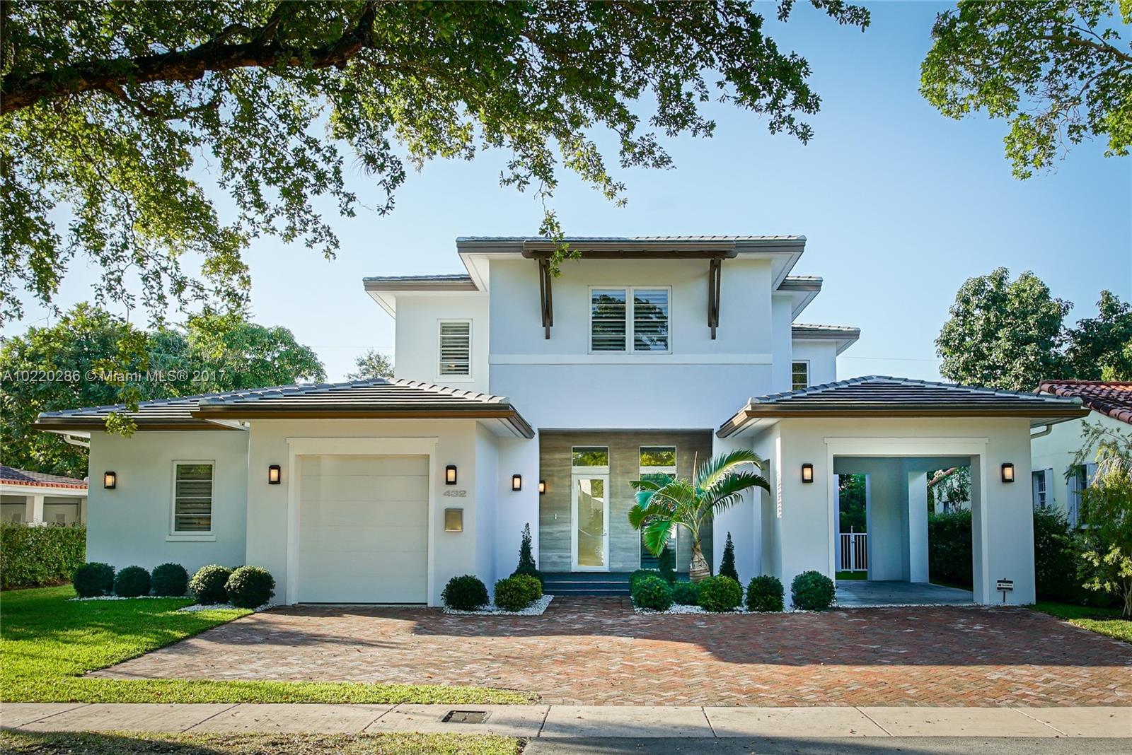 Absolutely incredible transitional modern home built in 2015 with beautiful design choices and finishes. The heart of the home is the open kitchen and family room, with dramatic views to a party sized terrace, saline pool, and built-in BBQ. The light filled kitchen is magazine quality with single slab stone island, custom ash and washed oak cabinetry, and equipped to please any cook. Exciting master with a dream bathroom and large balcony. Walk to the best of Coral Gables!