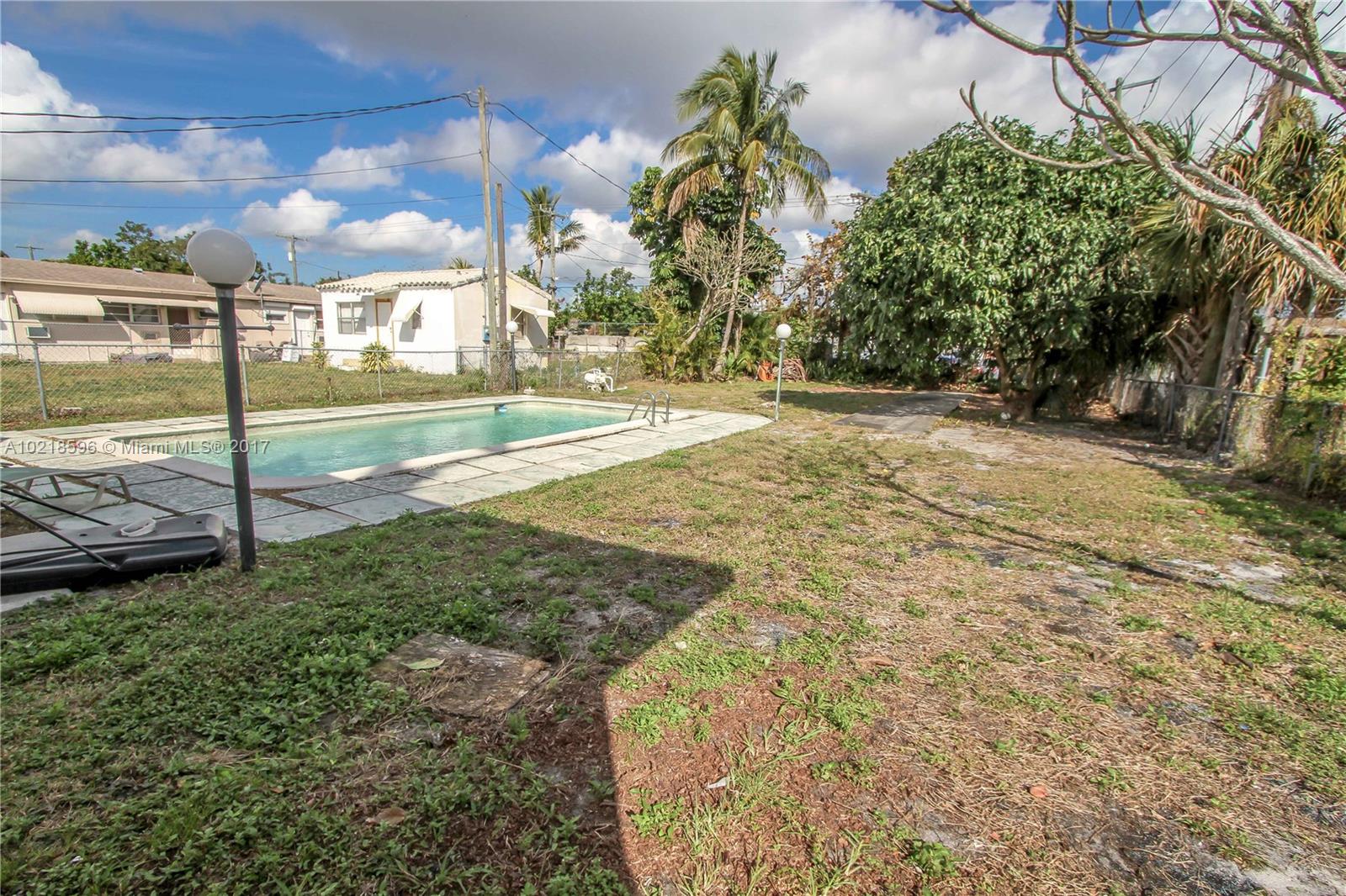 Move in condition! Bright 3 Bedroom, 2 Bath, 1 car garage home with large pool and fenced in backyard. Spacious Master BR features walk in closet. Formal Dining room. Kitchen features granite countertop, Wood cabinets, Stainless Steel appliances, gas stove, gas water heater. Newer Impact front, French doors and garage door. Newer water heater. Septic. Freshly painted. Covered front porch, open back patio. Located across from the Montessori school short distance to downtown Hollywood, Beaches and I95.