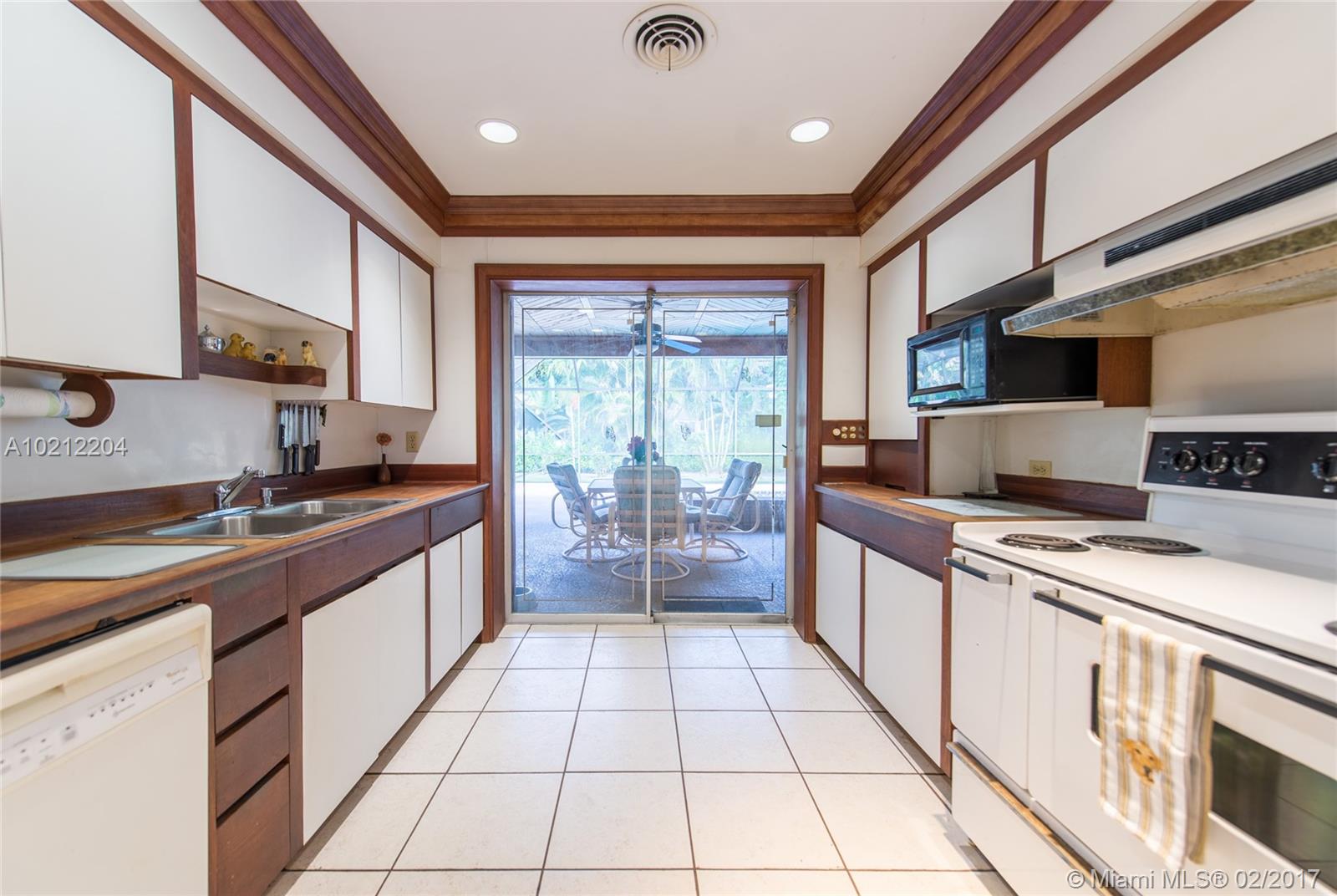 Mid-century 4/3 Ranch style home in wonderful North Pinecrest location awaits your personal touch! The well-maintained home sits on a beautiful corner 34,000+ SF lot w/plenty of room to add on/build dream home! Lg wood paneled family rm w/Chicago brick wood-burning fireplace. Kitchen w/teak counters + trim. Gracious spaces open to screened-in pool/patio. Custom woodwork throughout. 2 car garage + handyman’s dream workshop! New roof 2008. A+ schools! A wonderful opportunity in terrific location!