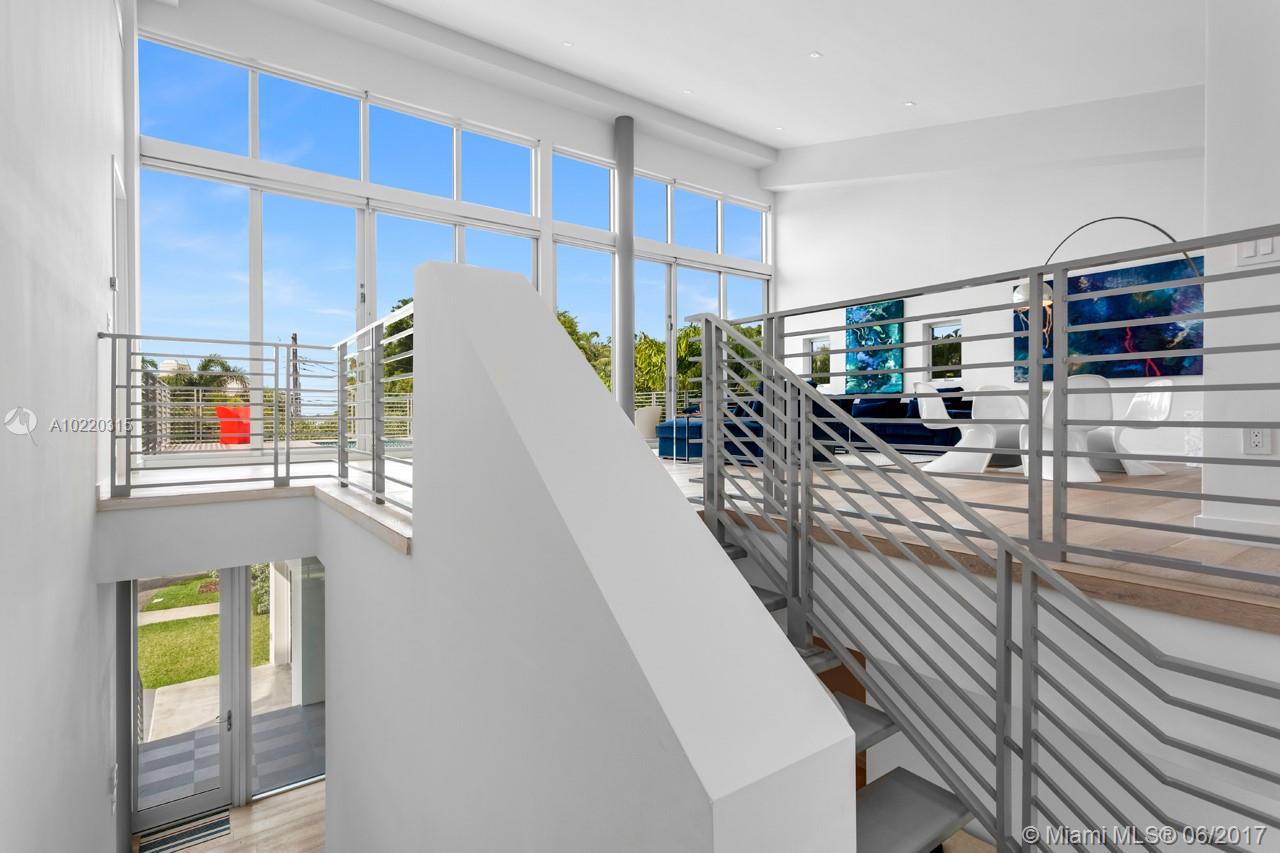 BRAND NEW modern home located on prestigious North Bay Road. Ascend the floating staircase and enjoy views of the sparkling pool throughout your open kitchen and living area. Slide open glass walls of hurricane impact windows and relax out on your second floor pool deck with treetop and water views. White oak floors, Lema Closets, Miele appliances and an exceptional glass garage make this modern masterpiece complete.
