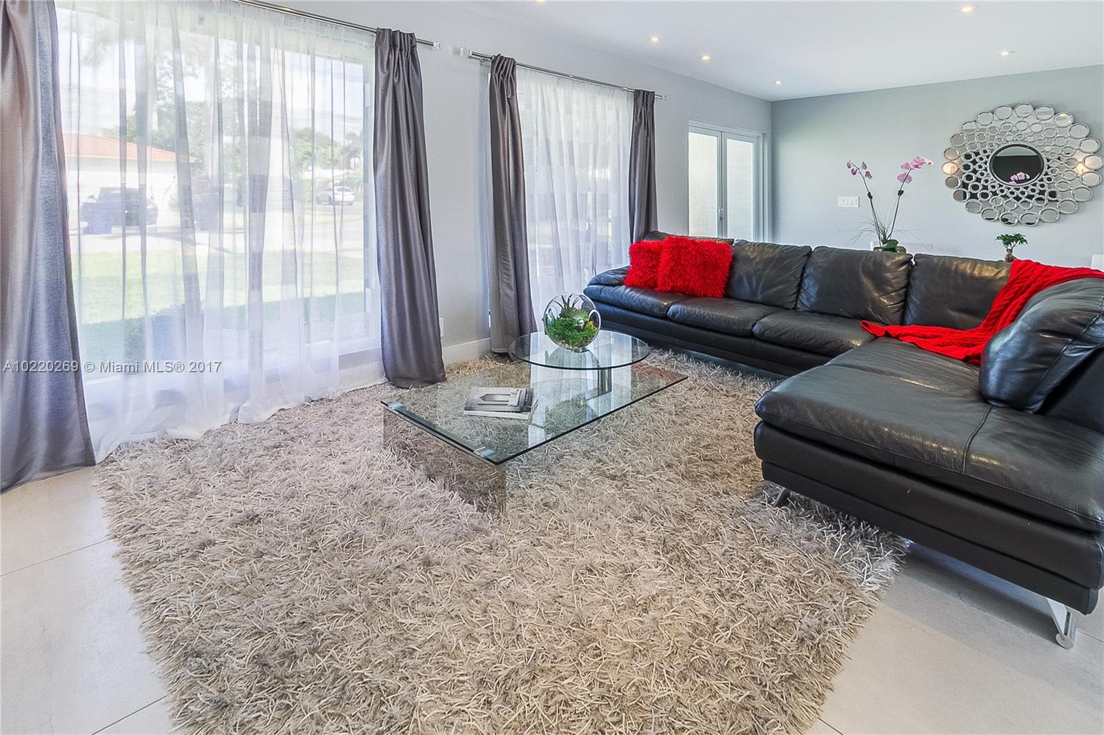No mandatory country club fees. This gorgeous 4 bedrooms, 2 baths, 2 car garage home was recently renovated with all necessary permits. Renovation includes all new roof, package unit A/C, impact windows and doors, electric panel, rewiring, plumbing, framing, drywall, industrial KitchenAid appliances, calacatta white marble counter top and back splash, frameless shower doors, walk-in closets, dual Bose sound system, pocket sliding door with panoramic opening, pool pump. Owner is related to listing agent.