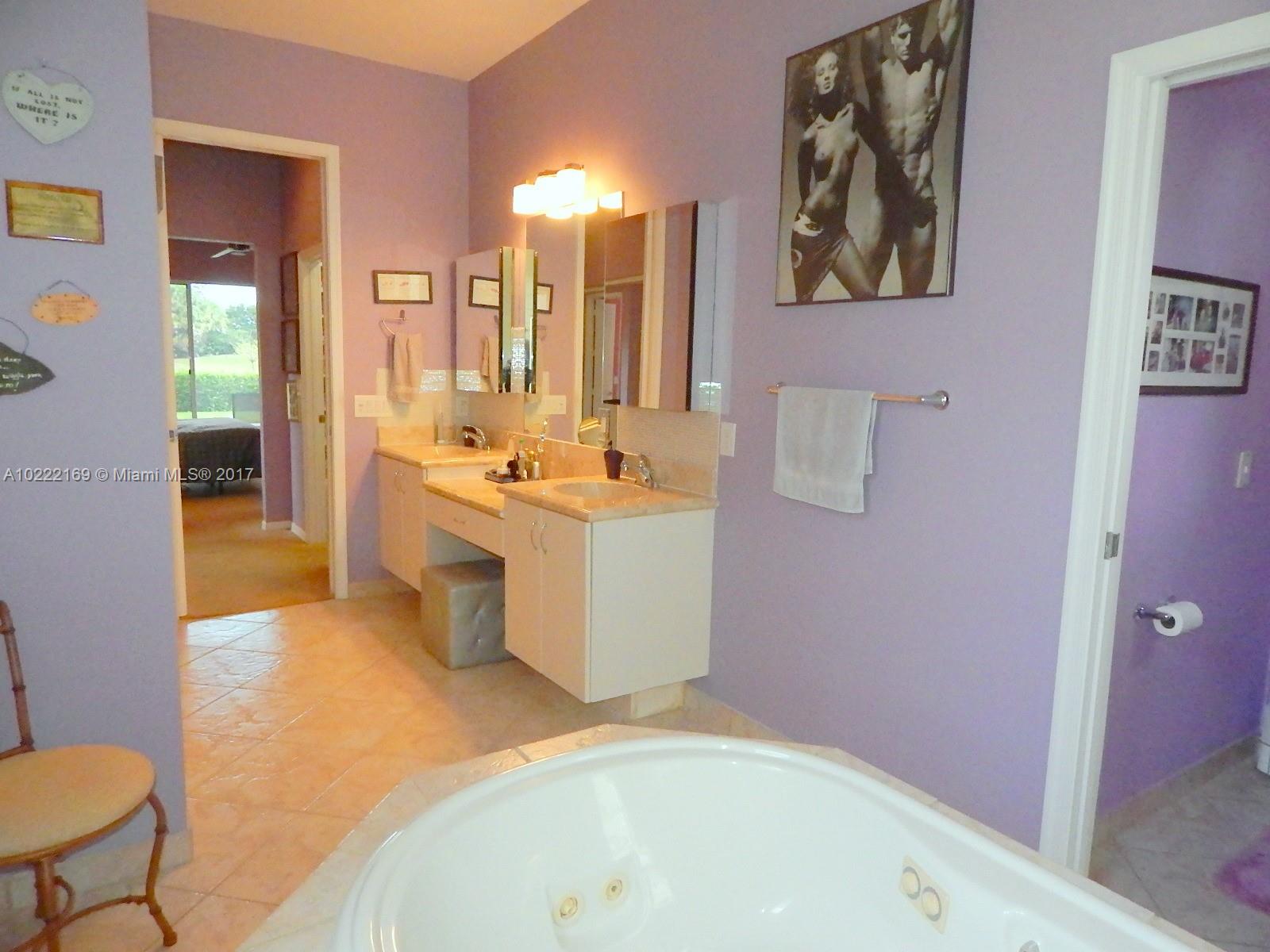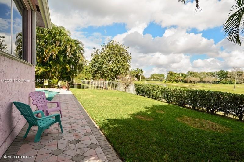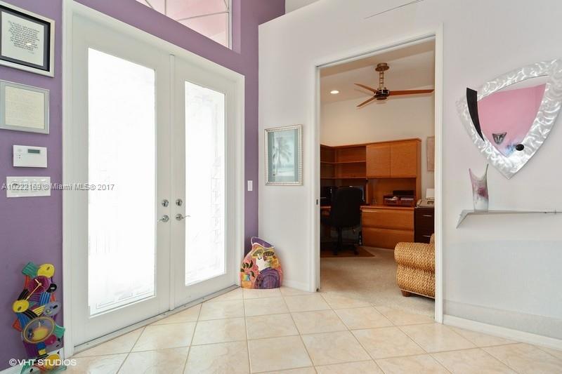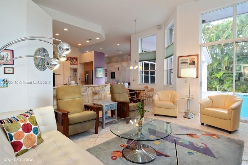 Lovingly-cared and built with detailed attention. South-Beach flair. 3Bdrm +Office, 3Bath. Lovely lake/golf course views of hole #3. 140'+deep lot. 2,880sf AC & 3,400sf total. Extended Family Room by 2', and 2 guest bdrms are 11x14. Kitchen has Wine Chiller, Bev Fridge, wall ovens. Fully fenced yard perfect for dog-lovers & children in prestigious gate-guarded community. Pool is 4' longer, paver deck extends along back & side. 13'ceilings, Accordion shutters. East exposure. A Schools & close to EVERYTHING