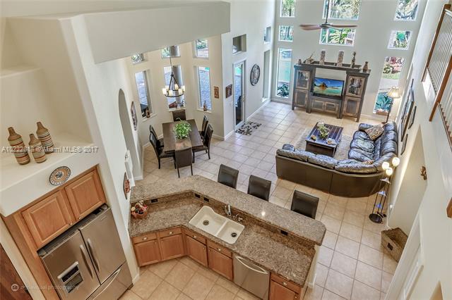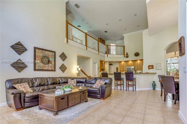 This beautiful home in well sought gated HIGHLAND RANCH ESTATES features a wide open floor plan layout with a formal dining/living room as you enter the house, an open kitchen with an island overlooking the family room breakfast area, split floor plan w/ master on the first floor & other bedrooms on the second. Volume ceilings, throughout. Big windows & sliding doors overlooking private backyard & pool area. Granite countertops. Tile & wood floors. Lushly landscaped.