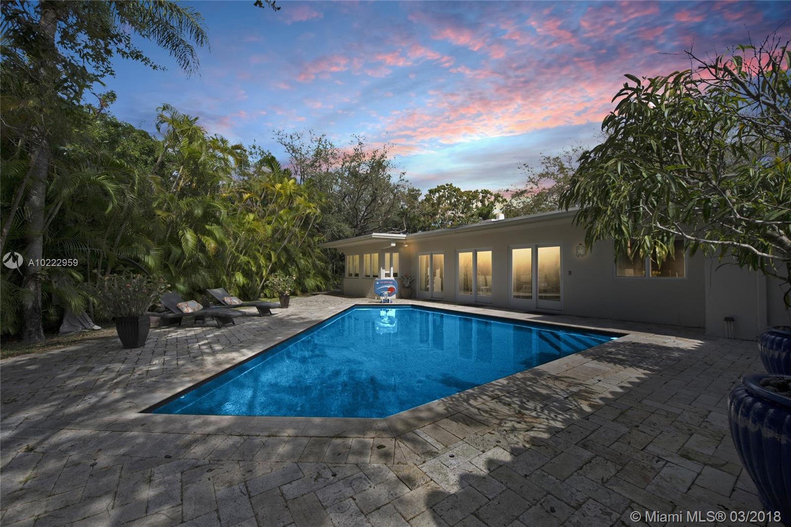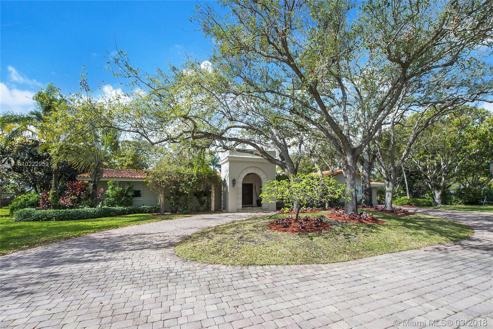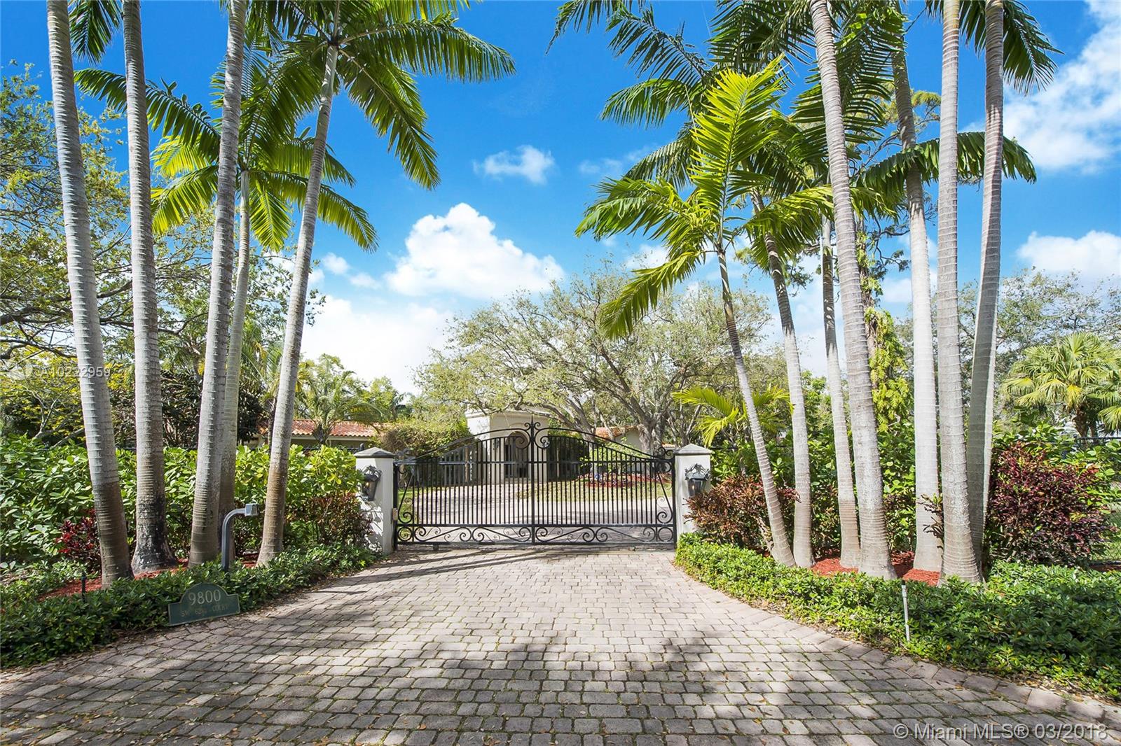 Gorgeous corner-gated Estate in prime Pinecrest location on a 31,798 SF lot.Soaring ceilings with bright living areas and spacious family room,all open to a covered terrace and pool area.This impeccable 5 bed/4 bath plus an office, has a versatile floor plan and magnificent details that include:wood framed Andersen windows,custom moldings,gourmet kitchen with Viking gas range,separate breakfast area,custom built-ins,state of the art new master bathroom,custom drapery,and large custom master walk in closet.