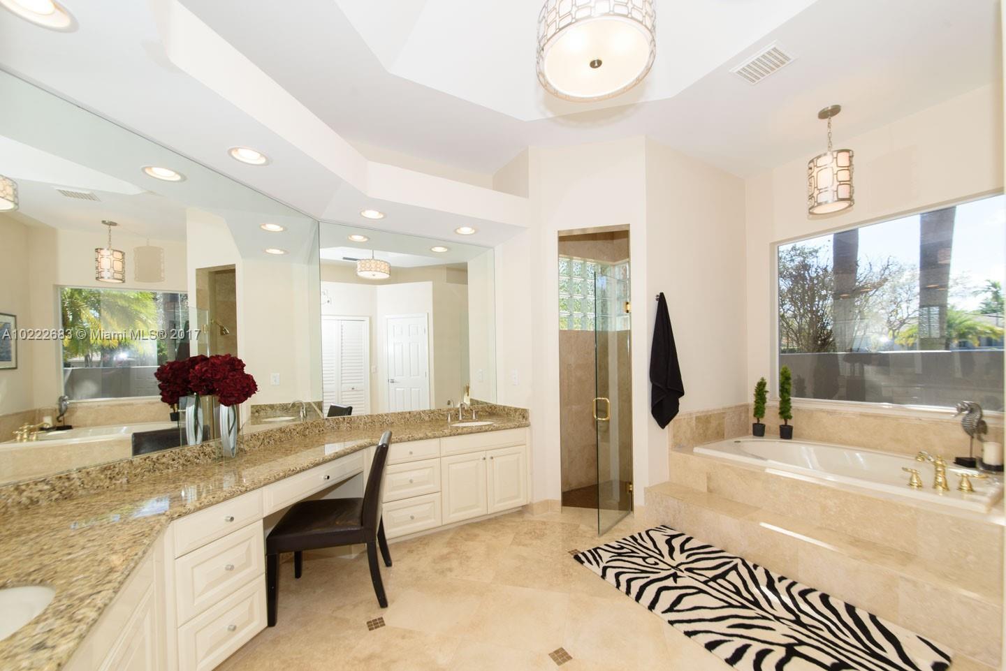Looking for that rare 1/2 acre cul de sac lot w/total privacy & no neighbors behind? Elegant custom home w/6 bedrooms & 6 en-suite baths. Enter this fabulous property via a paver circular drive w/porte cocher & custom wood contemporary doors. Marble floors throughout. Coffered ceilings & moldings. New neutral paint w/today's palate. Bathrooms have been updated, exquisite light fixtures & fans. Surround sound & more. Show like a decorators dream. Gourmet kitchen w/top of the line SS appliances.