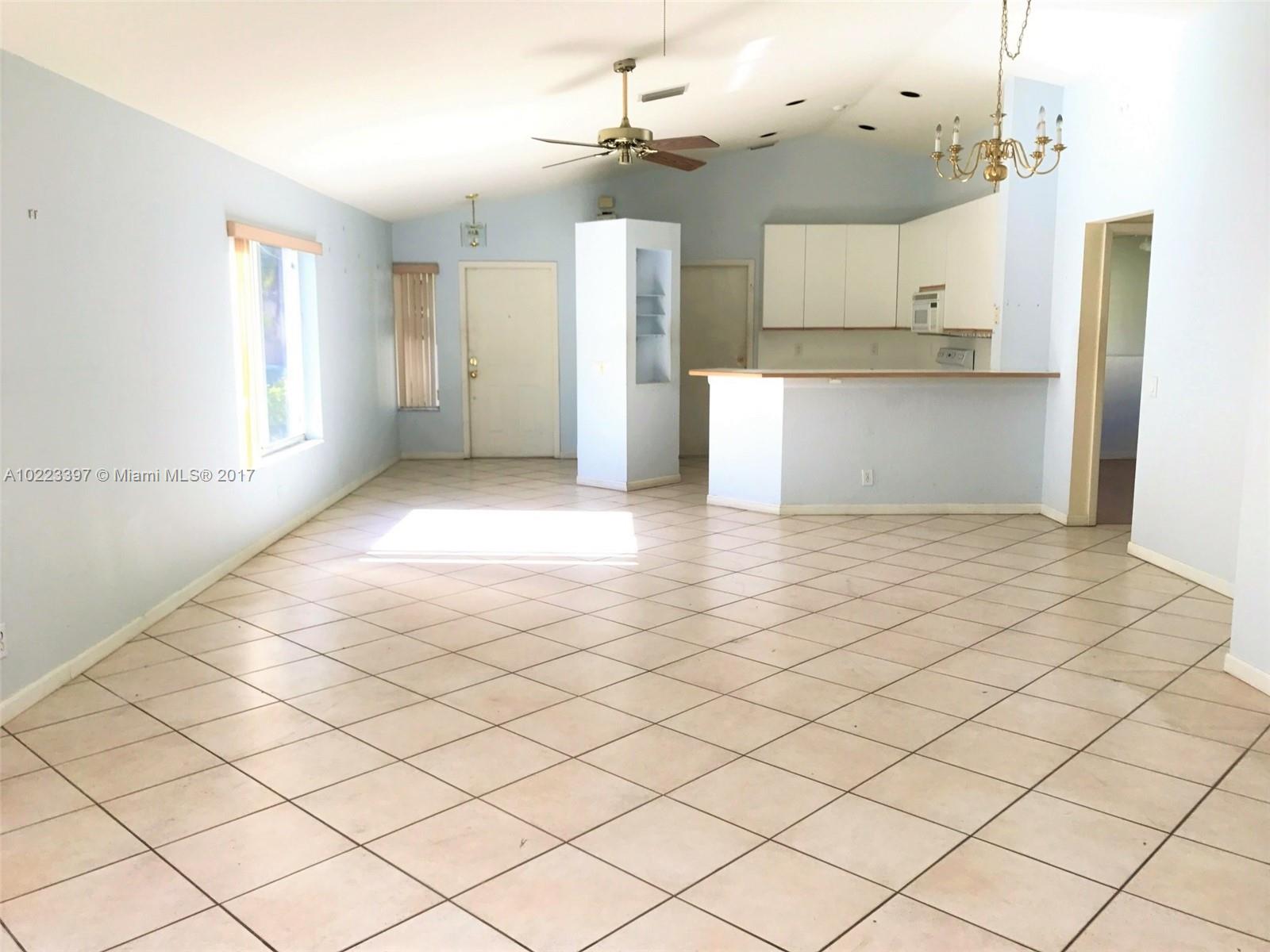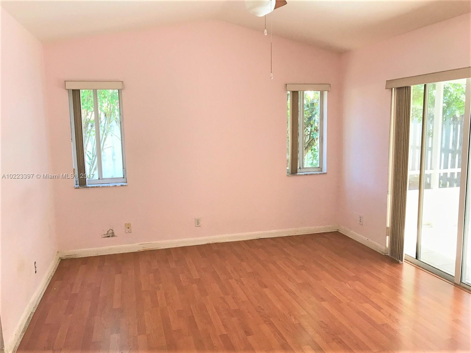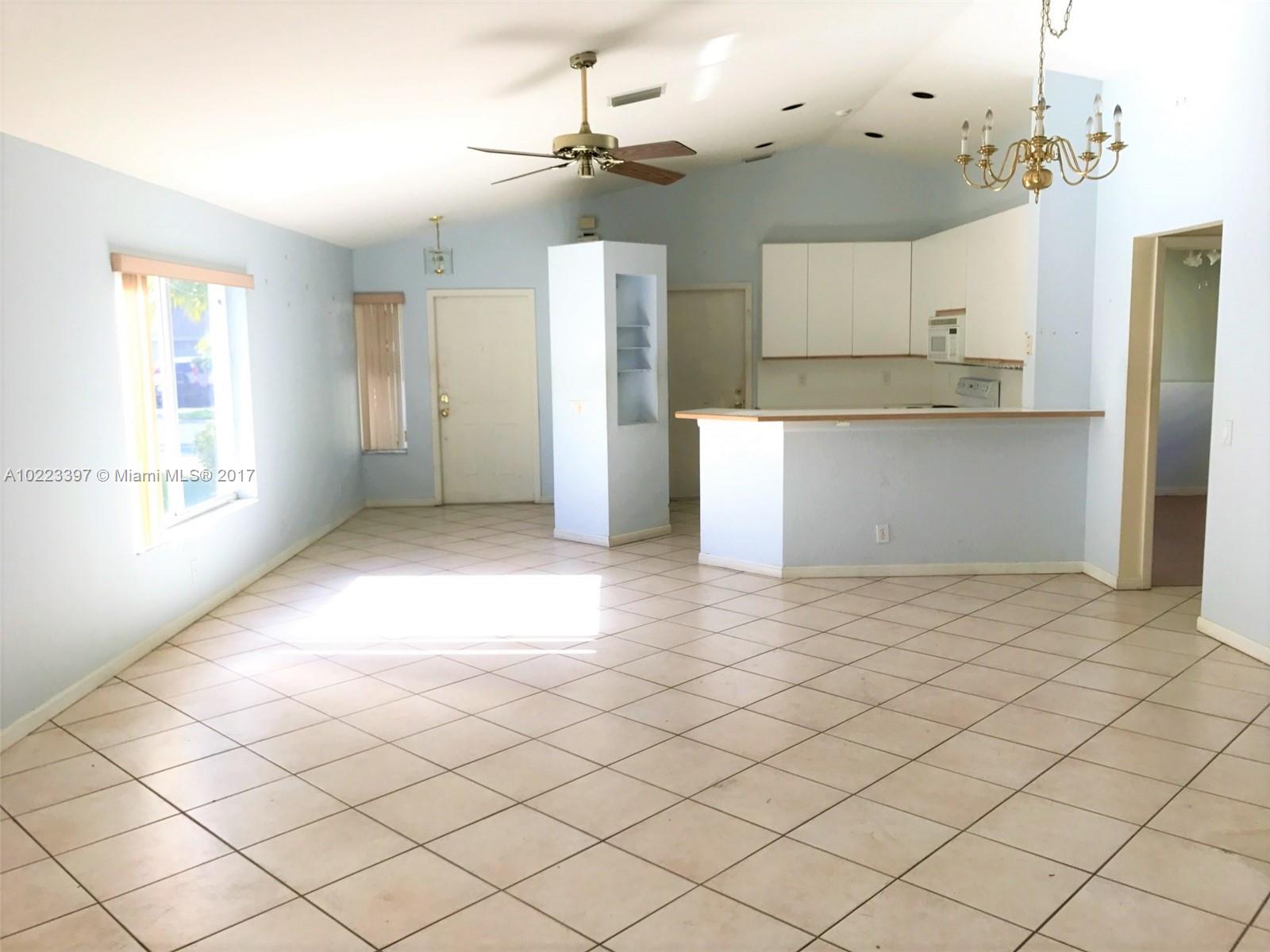 Detached single family home offers 3 good sized rooms, one story open floor layout, 2 car garage , fenced yard, and a screened in patio. Easy access to the highway, and close to the schools. The community offers a playground and a pool.