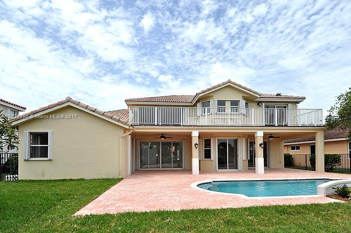 Contemporary inspired 4BR/3.5BA plus den has been completely renovated.. Outstanding water to golf view. Marble flooring in the social areas. Kitchen with laminated cabinets, granite counters, tiled backsplash, under-cabinet lighting & stainless steel appliances. Renovated and updated bathrooms, light fixtures, ceiling fans & hardware. Swimming pool & fenced yard. Brick paver driveway & patio. Accordion shutters, newer roof 2007 & Air conditioning unit.