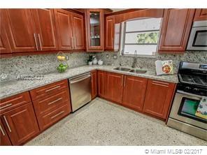Great location E of US1. Home features Split floor plan 3 BR 3 Full BA + 1 car carport. Updated open kitchen w/granite countertops, gas stove, stainless steel appliances + Pantry. 2 of the BA are updated w/porcelain tile. New electric panel. Plantation shutters in 3 BR & Living room. Recessed lighting Beautifully restored Terrazzo floors Spacious backyard w/large covered patio, great for entertaining. Gas dryer & Water heater (2) Detached storage sheds. A/C replaced in 2012. High-end LG Washer & dryer.