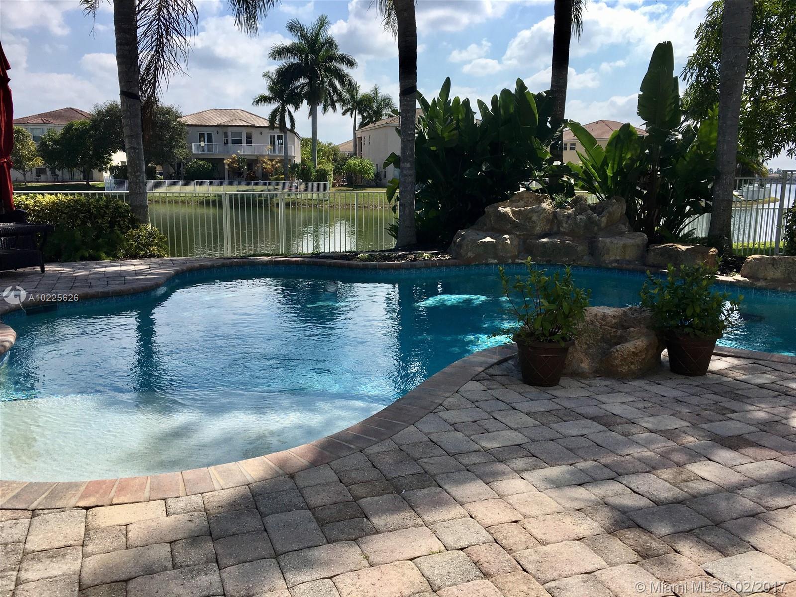 STUNNING MOVE-IN READY LAKE FRONT RIVIERA ISLES HOME! 3Bed + convertible room,2 1/2 baths,2car garage.Open layout:Formal living/dining.Spacious eat-in kitchen/New SS appliances.Huge Master w/French doors/California closets.Baths w/double sinks.Freshly painted interior.GORGEOUS backyard! relaxing spa-like setting/free form pool/unique lake views.Gated Family/Pet friendly Community offers multiple amenities. PREMIUM location: Restaurants,Shopping,Entertainment & minutes to I-75/Florida's Turnpike. MUST SEE!