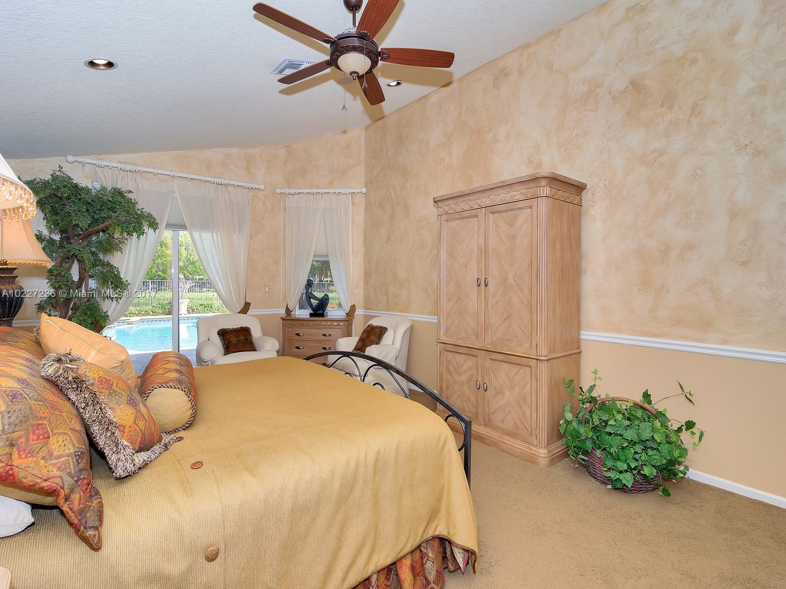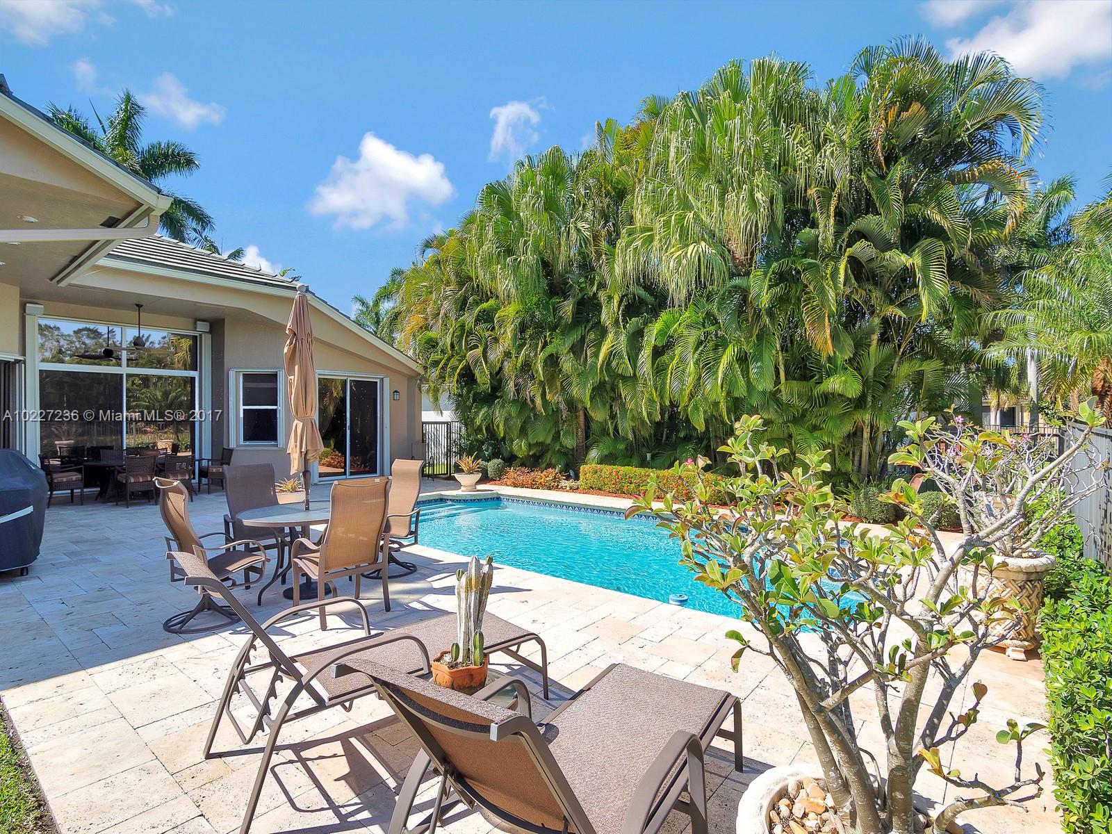 Weston Hills at its best! Sophistication meets understated elegance. This 4BR/3BA home w/ stunning office is located on a tranquil lake setting w/ heated pool & rock garden. Great for child's play area! This split bedroom home has extensive upgrade! Oak floors through the living area, custom kitchen w/ exquisite granite, a new master bath design w/ warm stone & spa-like features. Multi-zone audio system with 6 speakers in family room, office, master bedroom, and pool deck w/ independent volume controls.