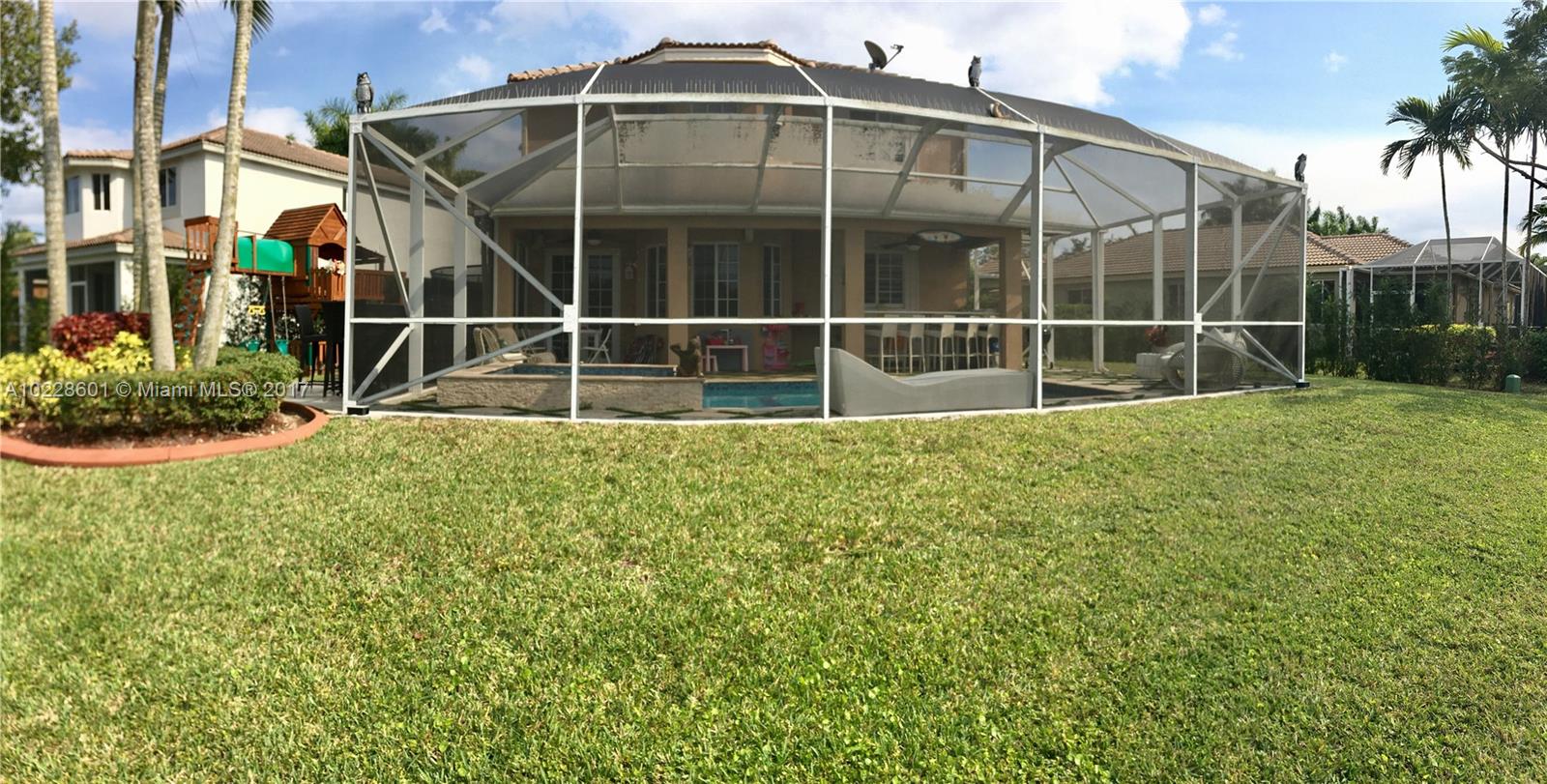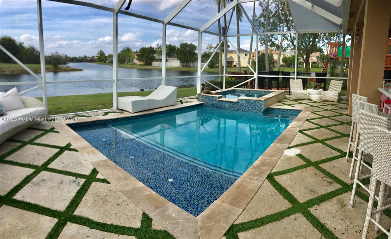 Completely remodel two stories chic and lovely house in one of Weston's finest areas. New bright porcelain floors, new and expanded kitchen with white silestone counter tops, stainless steel KitchenAid appliances, new bathrooms with Jacuzzi, New Impact Windows, convenient office room, modern and gorgeous pool and grill area with bar with screen, outdoor playground, beautiful lake view, 2 remodel car garage. Close to everything you need:A+ schools, shopping,banks. SAME DAY SHOWING OK