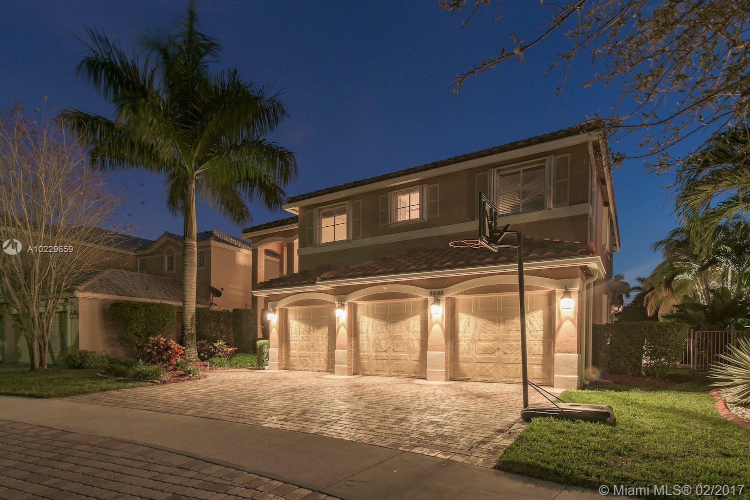 Beautiful energy efficient home in The Ridges at Weston. This lake front Emory two model features: 6 bed, 4 bath and 3 car garage, upgraded kitchen, hard wood floors upstairs, tile downstairs, crown molding, central vacuum, accordion shutters, plantation shutters, newer roof, salt water pool, energy efficient: LED lights and dimmers, newer oversized A/C unit, thankless water heater, sprinklers use lake water. Easy access to highway and A rated schools.
