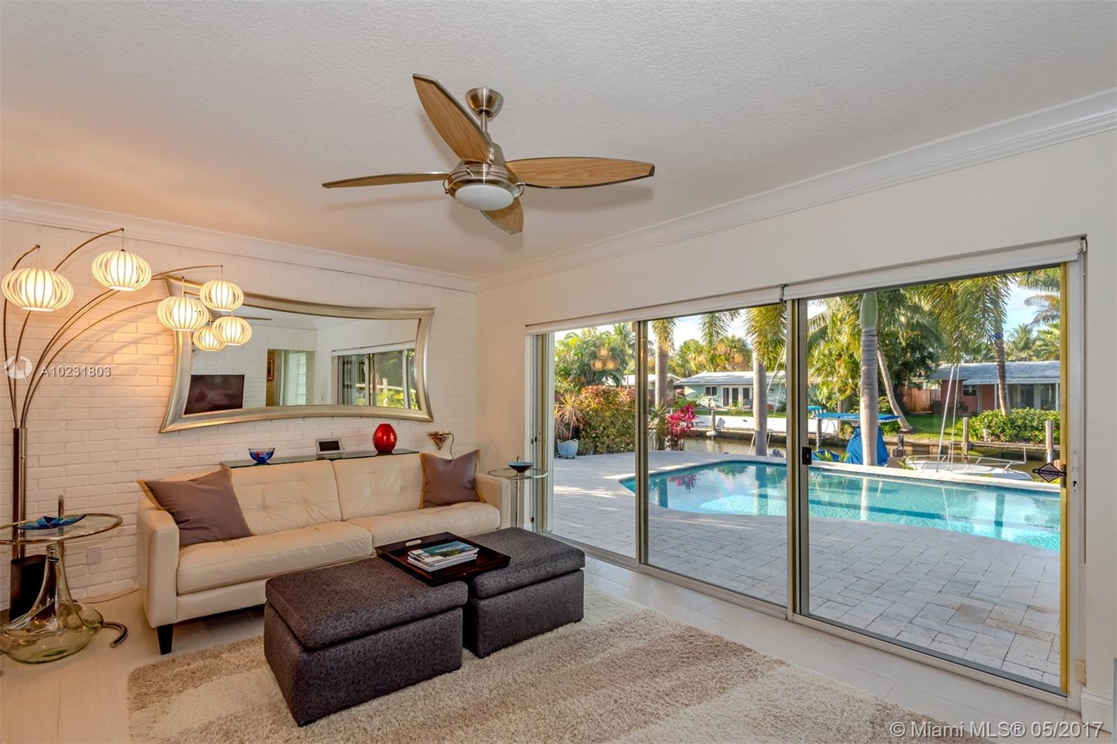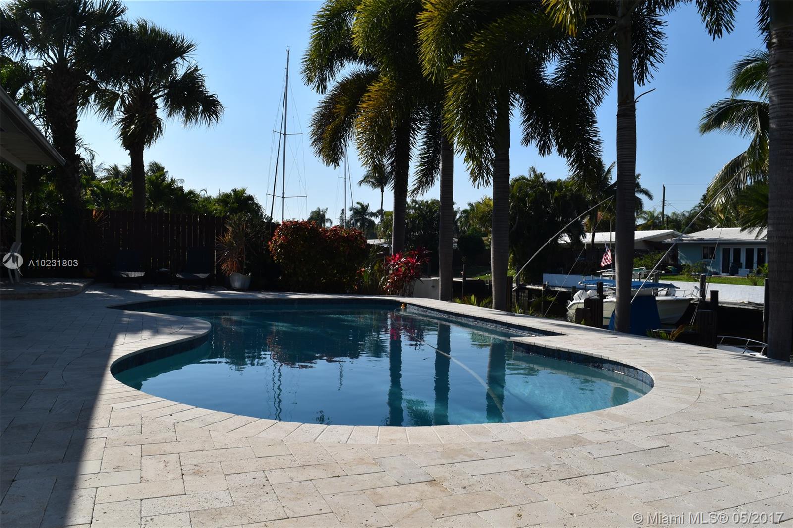 Beautiful 3/2/2CG pool home on 65 feet of waterfront with No Fixed Bridges, very close to downtown Ft. Laud. Open floor plan with vaulted ceilings and 16x32" porcelain tile in living areas. Kitchen features a granite breakfast bar, SS appliances, and gas stove. Most windows/door are impact glass. Gorgeous pool has a salt system and a heat pump, Travertine marble pool deck and patio, dock is equipped with 30 and 50 amp service and water. 9x10 Utility rm Wonderful location, easy to get to 95, 595, airport