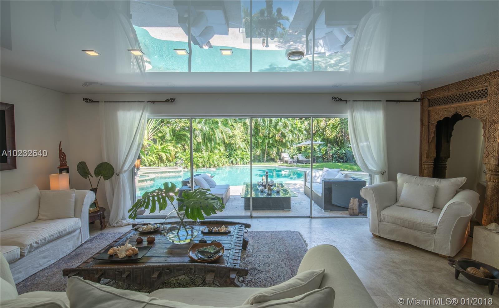 Stunning residence, East of US1. Just 2 blocks from the Bay on a quiet cul-de-sac street. Open floor plan w/ plenty of Natural Light, top quality renovations, new gourmet kitchen w/ quartz counter tops and European cabinetry and appliances. Marble floors throughout. Unique and very private grounds and gardens with marble patios. 12,249 Sq Ft lot with Centenarian Oaks, lush landscaping (over $250k spent) with free-form pool w/ beach, Jacuzzi and waterfall. Priced to sell! Motivated Sellers, Easy to Show!