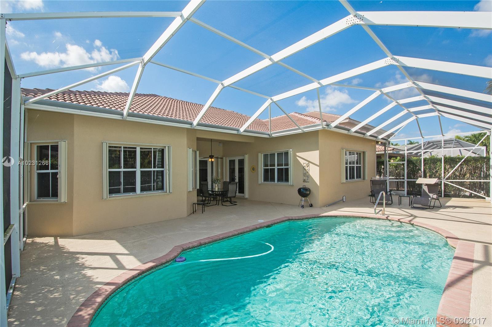 1-story home w/tropical plants & pavers in front located in Marshes I in Savanna. Amenities & long walking trails. Split floorplan, Light Wood flrs, French drs leading to private patio w/screened pool/peaceful waterfall pool. Mstr bdrm has 2 closets. Kitchen w/granite countertops/ss appl. Built-ins in 4th bdrm. Savanna Commons Community Center Offers: 3 pools, clubhouse, soccer field, Basketball Cts, Pool, Playground, biking, jogging trails & security patrol.