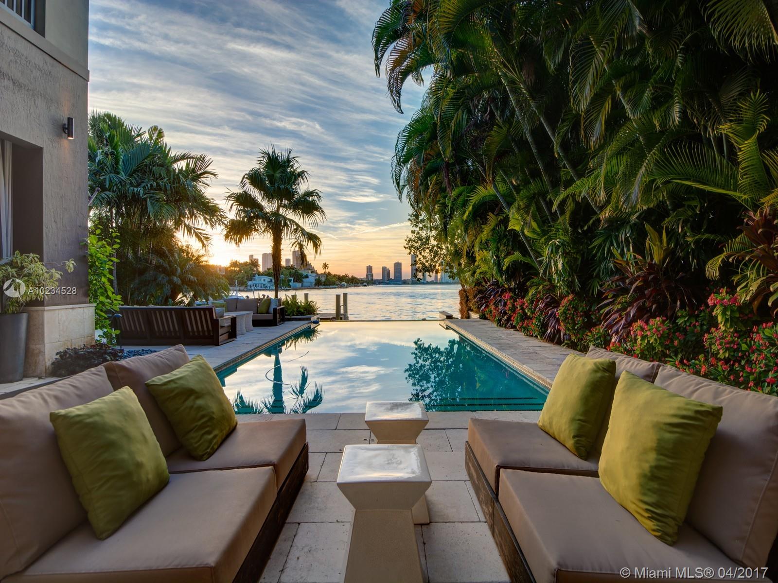 Beautiful Modern 8 bed 8 1/2 bath with stunning westerly Miami skyline and wide bay views. The home was recently renovated with luxurious interior design by Allen Saunders, spacious master suite with his/her dressing rooms, large living and dining areas with adjacent chef's kitchen. Lush terraces and outdoor seating summer kitchen, bar, cabana bath, infinity edge pool, hot tub and boat dock. Also available for rental, $45,000.00 monthly.