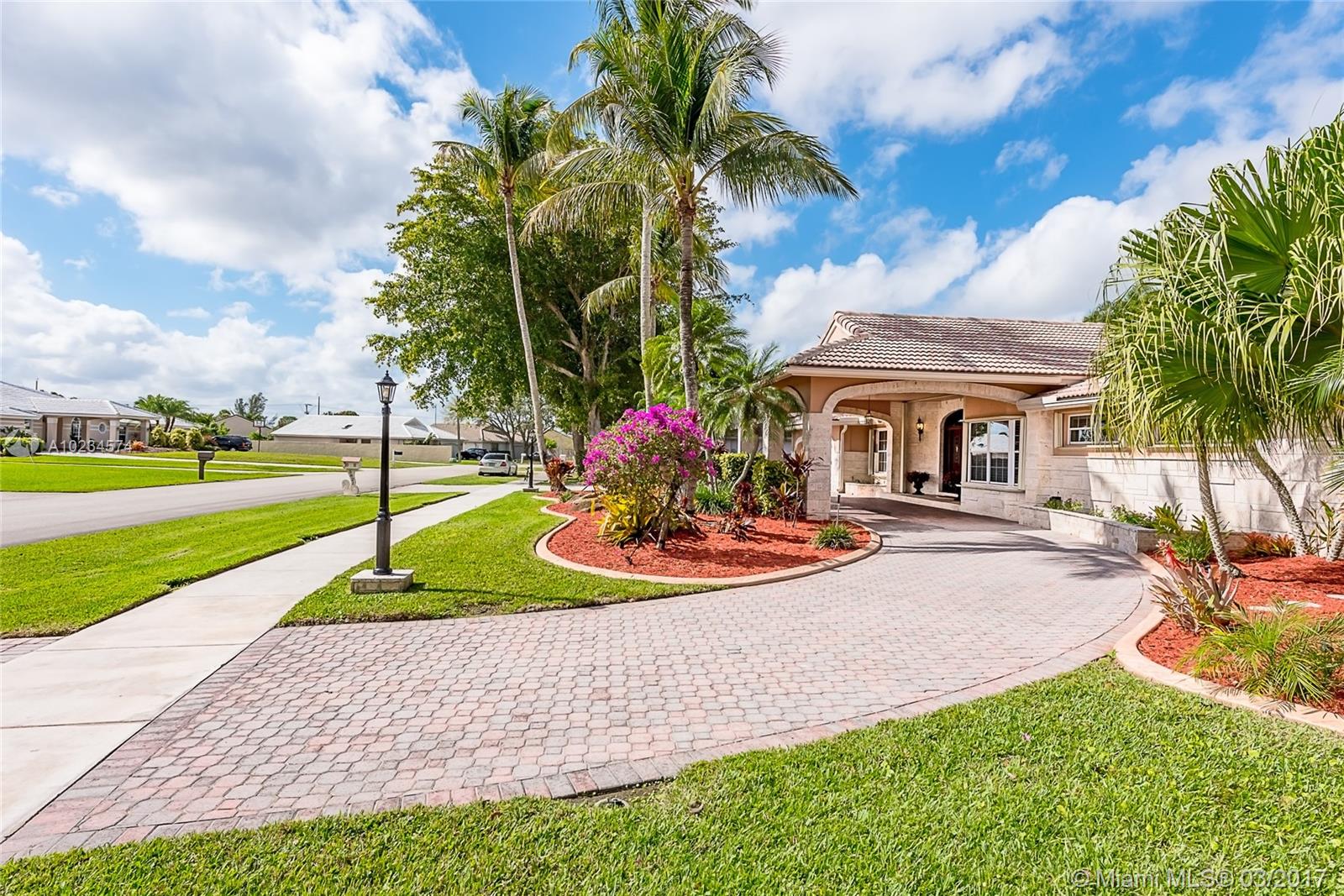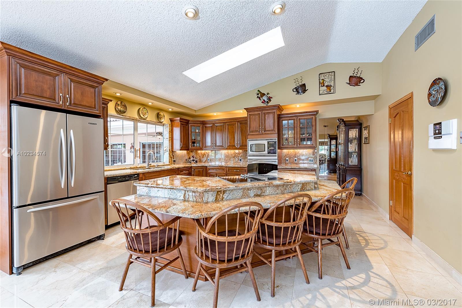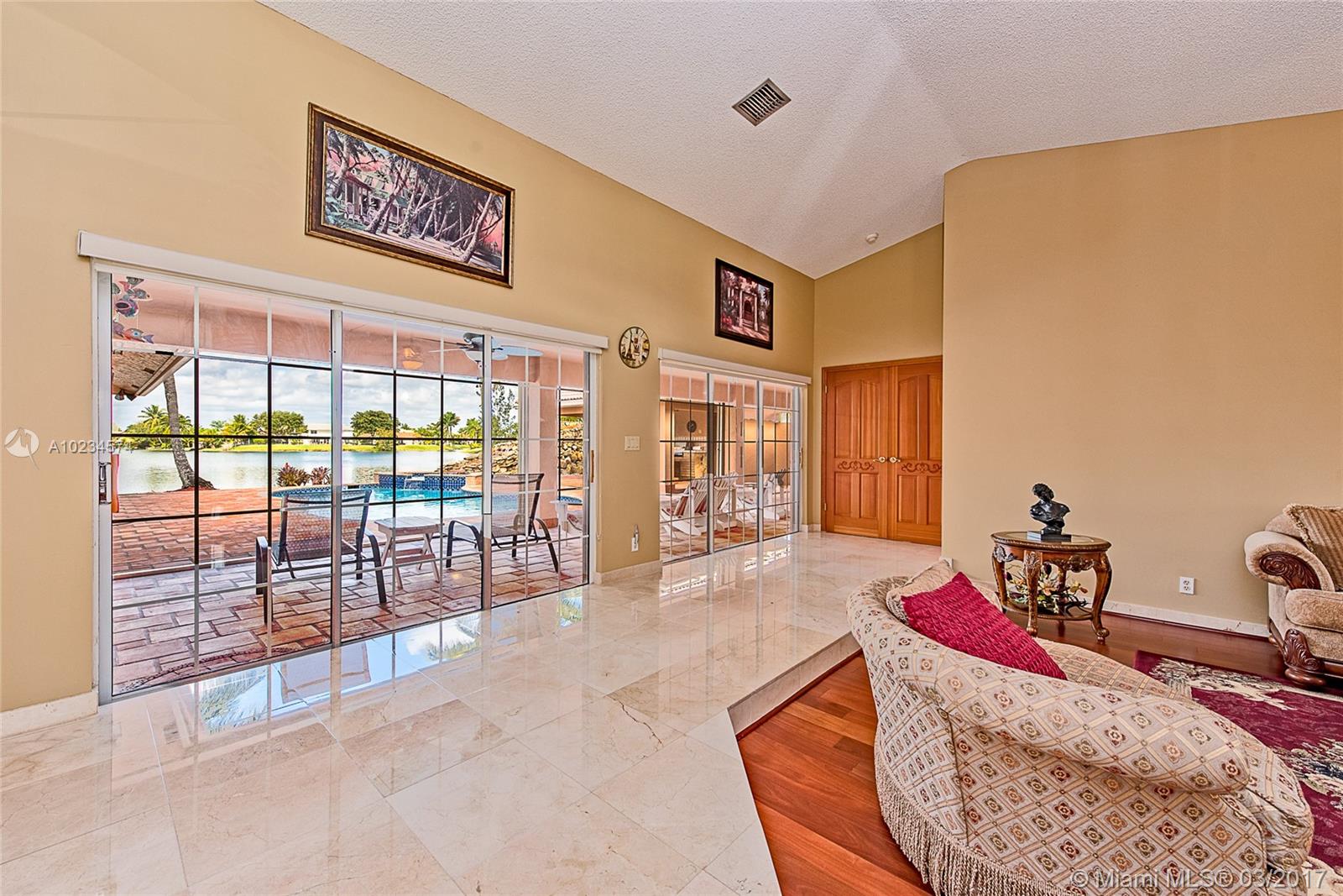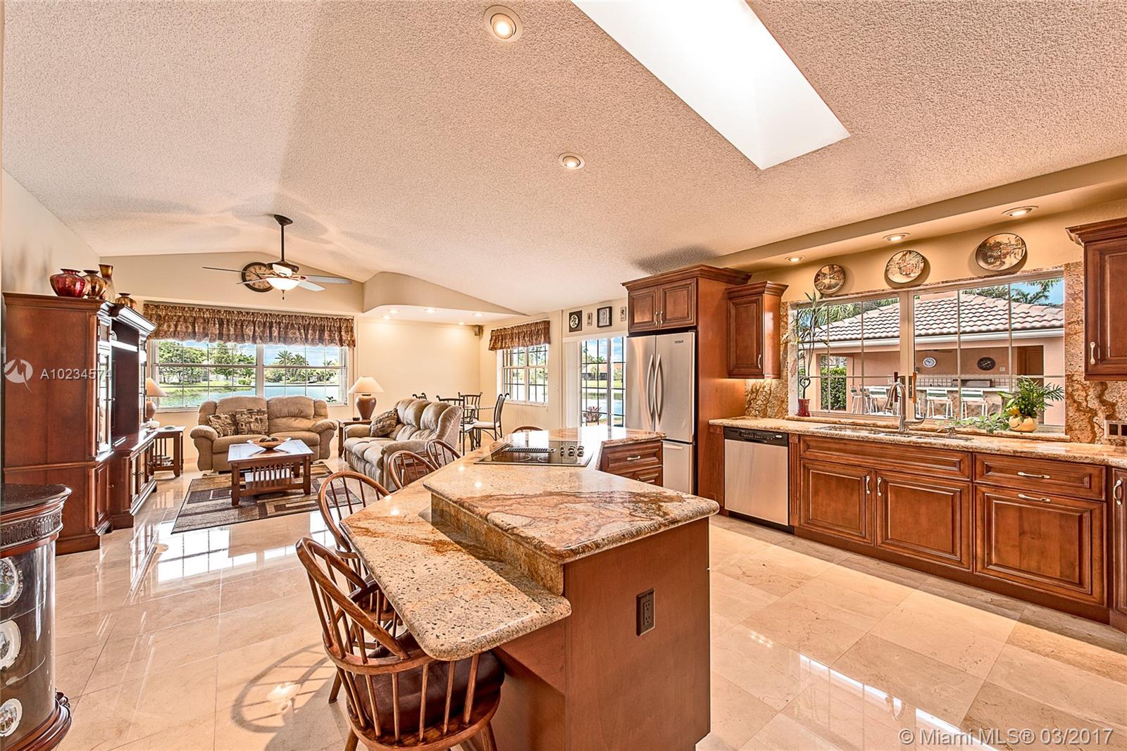Custom Built Home in one of a kind street, beautifully updated, meticulously maintained. 4 Bedrooms with 2 and half bathrooms inside with pool,spa and spectacular waterfall overlooking lake is a dreamers delight. Great for entertaining around pool has built in BBQ area with full bathroom outside. Home has many unique features to boast about such as kitchen with granite counter tops and stainless steel appliances, cathedral ceilings, marble floors, Accordion Shutters, Backup Generator and so much more.