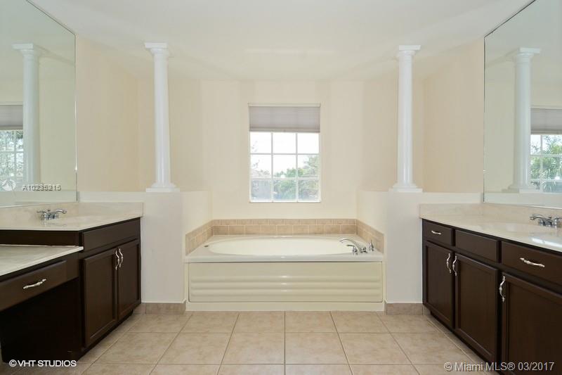 Great opportunity in the secluded newest gated community in Weston "Isles at Weston" This spacious 2 story with spectacular waterfront view, has 5 bedrooms & 3 bathrooms (1BR/1BA on first floor), 3 car garage open kitchen with breakfast nook, separate living, family and formal dining room. Master bathroom with his and hers separate tub and shower. Tiles on first floor and carpet on second. Great schools Manatee & Cypress Bay. Walking distance to Weston Library and YMCA park.