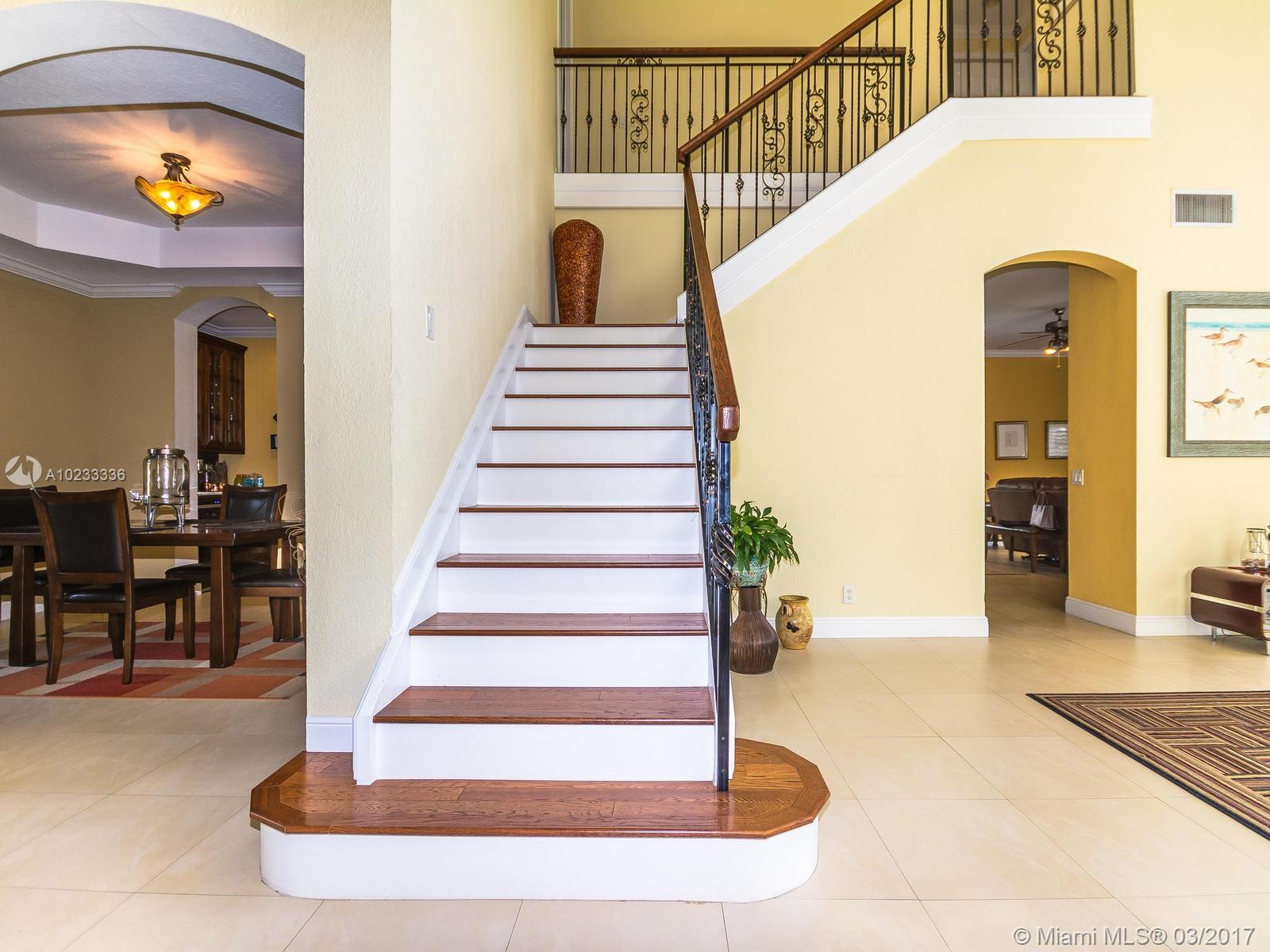 Exquisite 4/3.5 on a scenic lake in gated Biltmore Estates.Impressive front w/foyer entry to the grand formal living room. Vaulted ceilings & Full length windows in all living areas makes the home bright & open.Nice warm neutral colors & crown molding throughout. Chef's kitchen w/cooking island,granite counters, stainless steel appliances & a bonus bar,renovated baths & hurricane shutters.Double masters, one on each floor,backyard perfect for entertaining,meticulous home shows like a model!