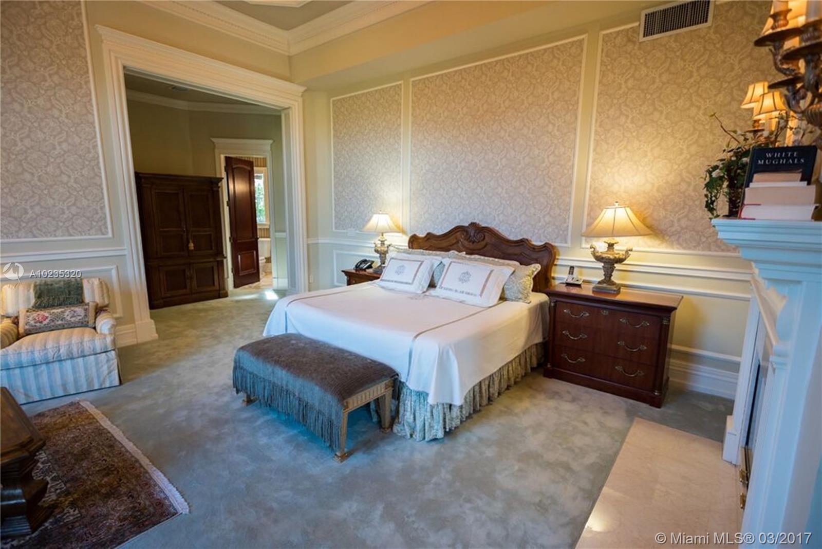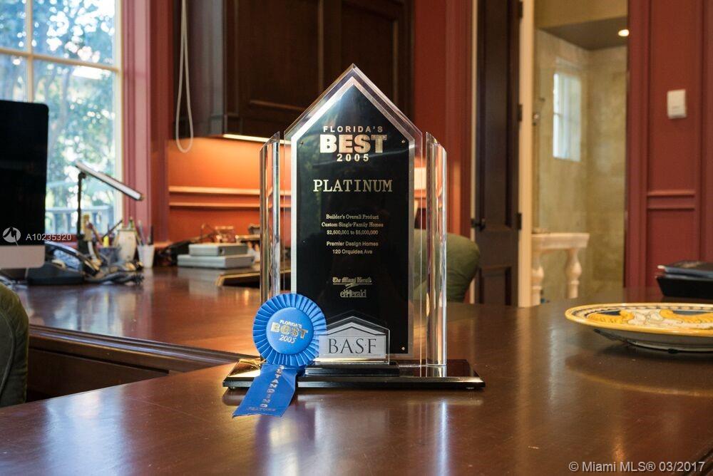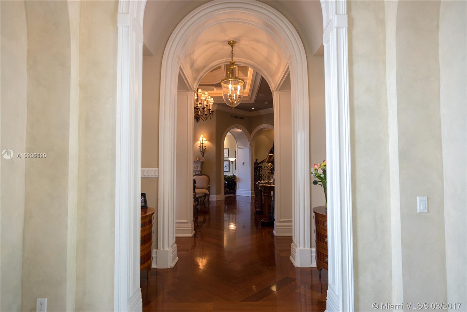 Exquisite Private Waterfront Residence, Enclosed Breezeway Entry, High Coffered ceilings, gorgeous Millwork, Summer kitchen,wine storage for 750 bottles, Gym, Gourmet Kitchen, Pantry, 5 bedrooms, 4 Baths on 2nd Floor, balconies, Elevator. 6th Bedroom Suite on first floor, now used as Office. Expansive Private Master with Sitting Area, luxurious bath, extra large closets. Terraces overlooking Pool and water views. A truly beautiful home. 2005 Winner, Best Custom Home Platinum Award. 15,428 Ft Lot.