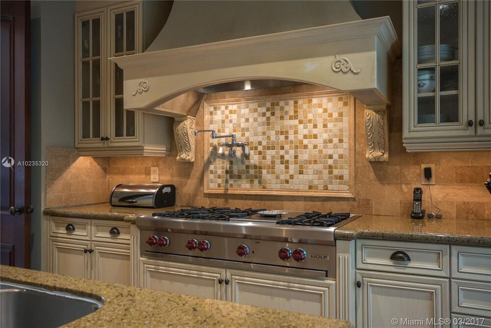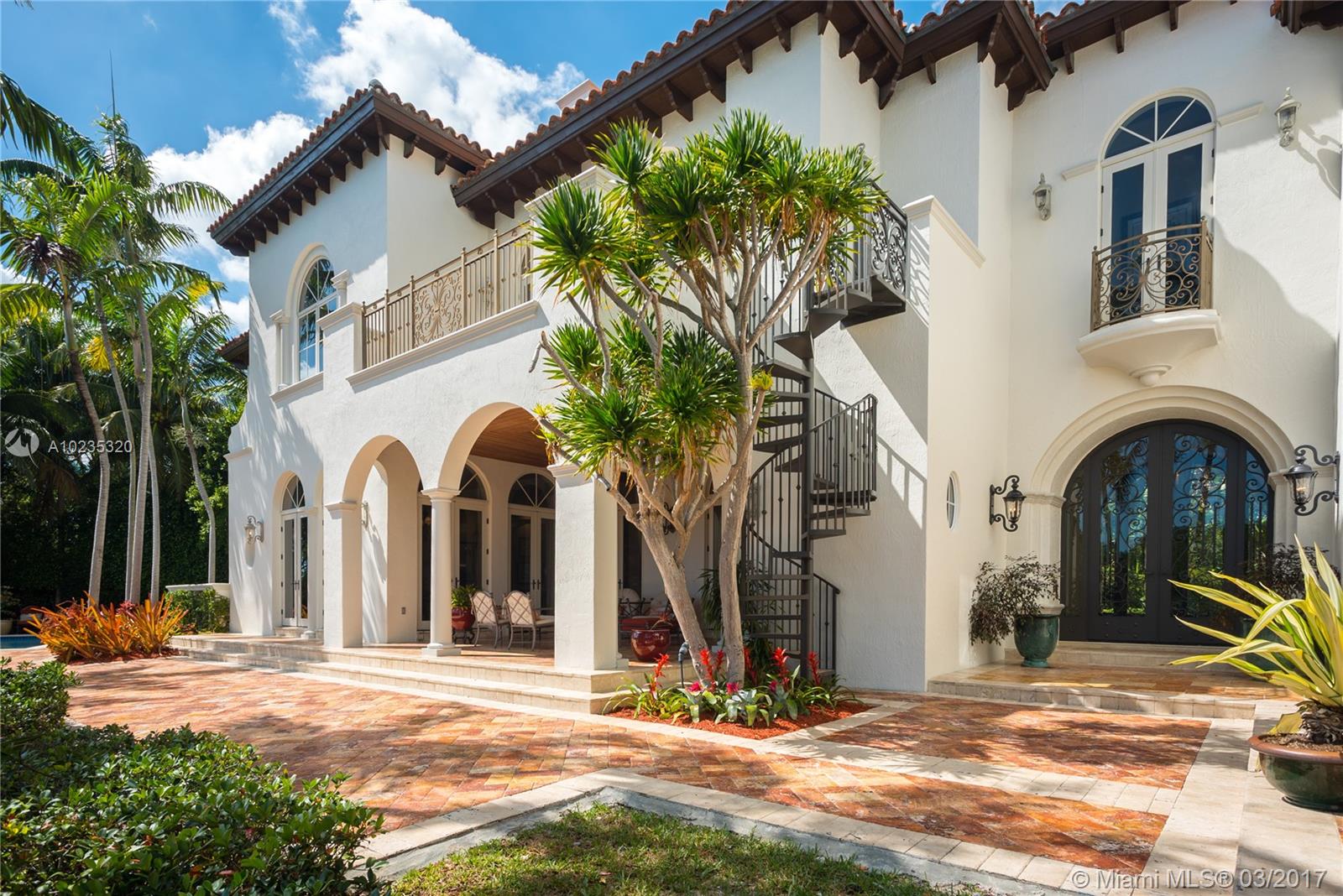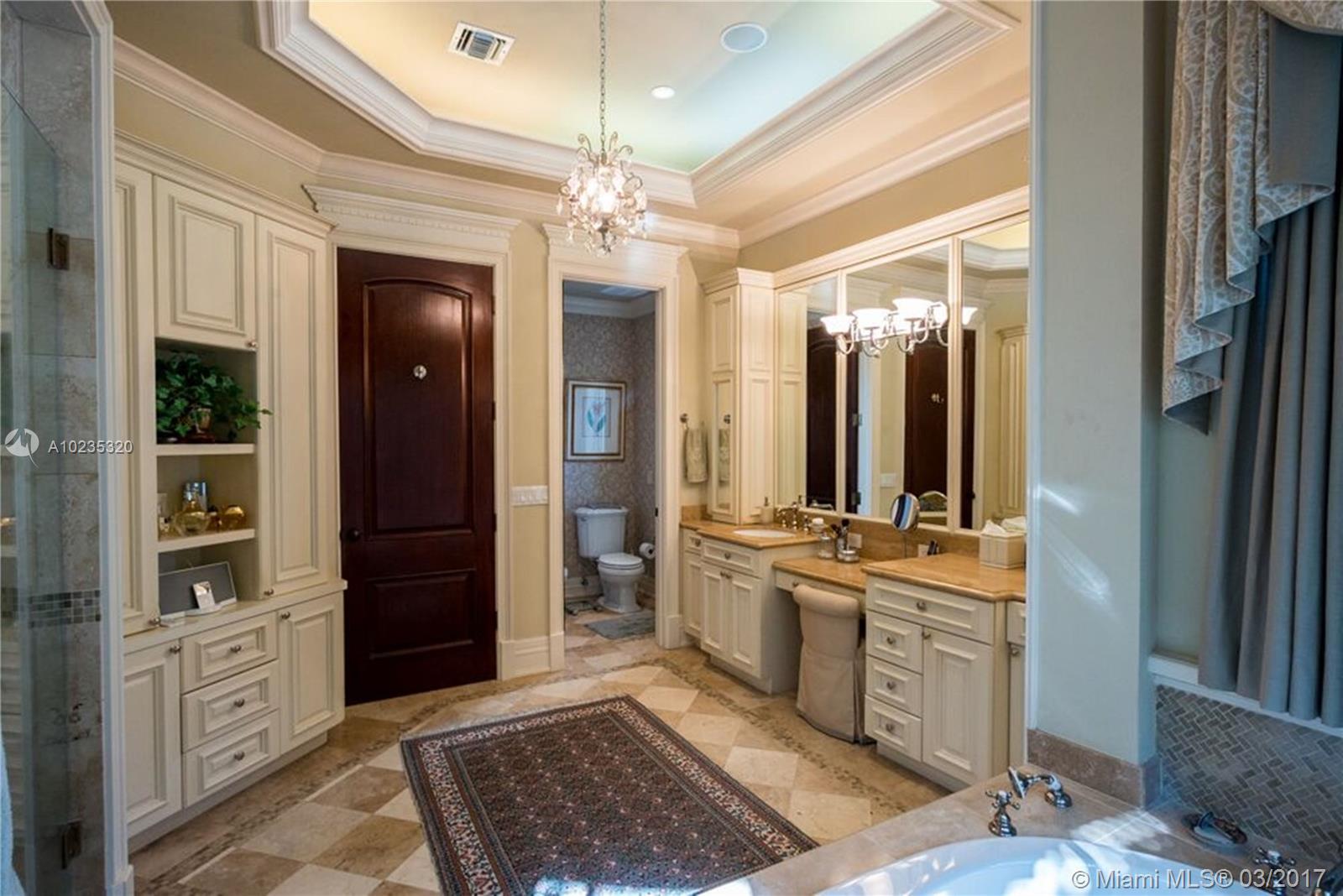 Exquisite Private Waterfront Residence, Enclosed Breezeway Entry, High Coffered ceilings, gorgeous Millwork, Summer kitchen,wine storage for 750 bottles, Gym, Gourmet Kitchen, Pantry, 5 bedrooms, 4 Baths on 2nd Floor, balconies, Elevator. 6th Bedroom Suite on first floor, now used as Office. Expansive Private Master with Sitting Area, luxurious bath, extra large closets. Terraces overlooking Pool and water views. A truly beautiful home. 2005 Winner, Best Custom Home Platinum Award. 15,428 Ft Lot.