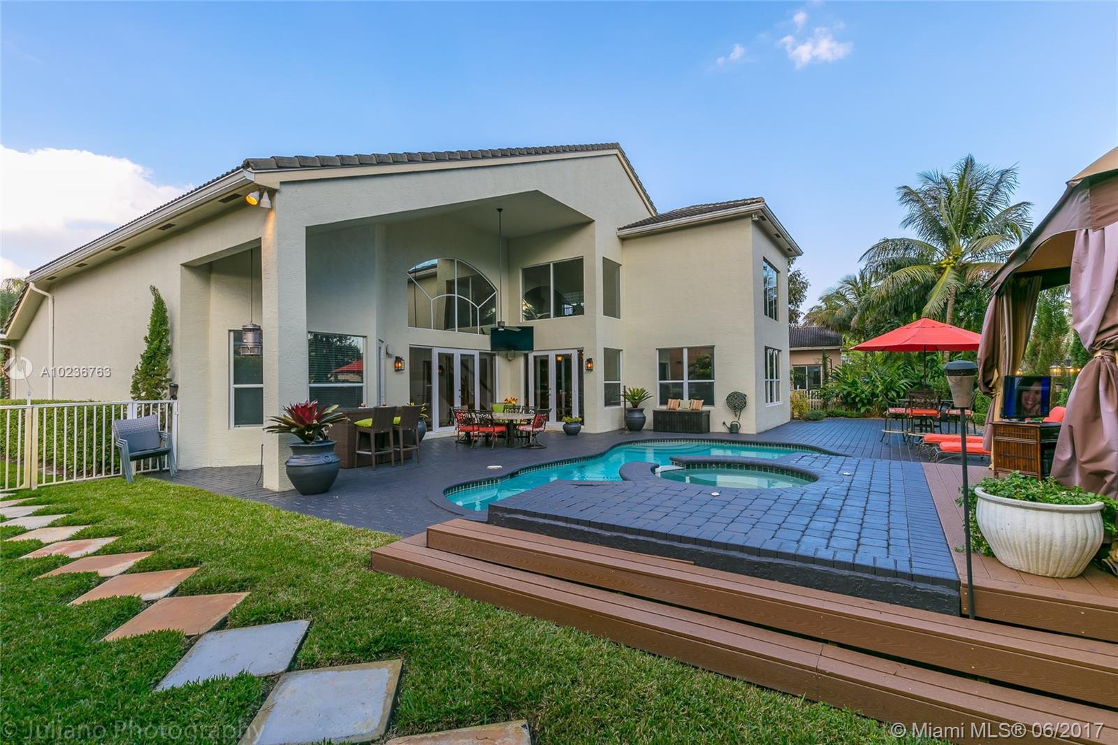AN ULTIMATE PRIVATE SUPERB HOME FOR ENTERTAINING IN GUARD GATED SUNSET LAKES. THIS STUNNING 5 BEDROOM 5 BATH WITH UPSTAIRS FAMILY ROOM WHICH CAN BE CONVERTED INTO 6TH BEDROOM IS SITUATED ON A VERY PRIVATE 1/4 ACRE LOT. SPECTACULAR GROUNDS WITH POOL AND SPA WITH ELEVATED CABANA AND NO HOME BEHIND YOU FOR COMPLETE PRIVACY. JUST NEWLY REMODELED INTERIOR. IMPACT GLASS BACK PATIO FRENCH DOORS. BEAUTIFUL PLANK WOOD FLOORS. ALL IN OUTSTANDING COMMUNITY OF SUNSET LAKES WITH SENSATIONAL AMENITIES.