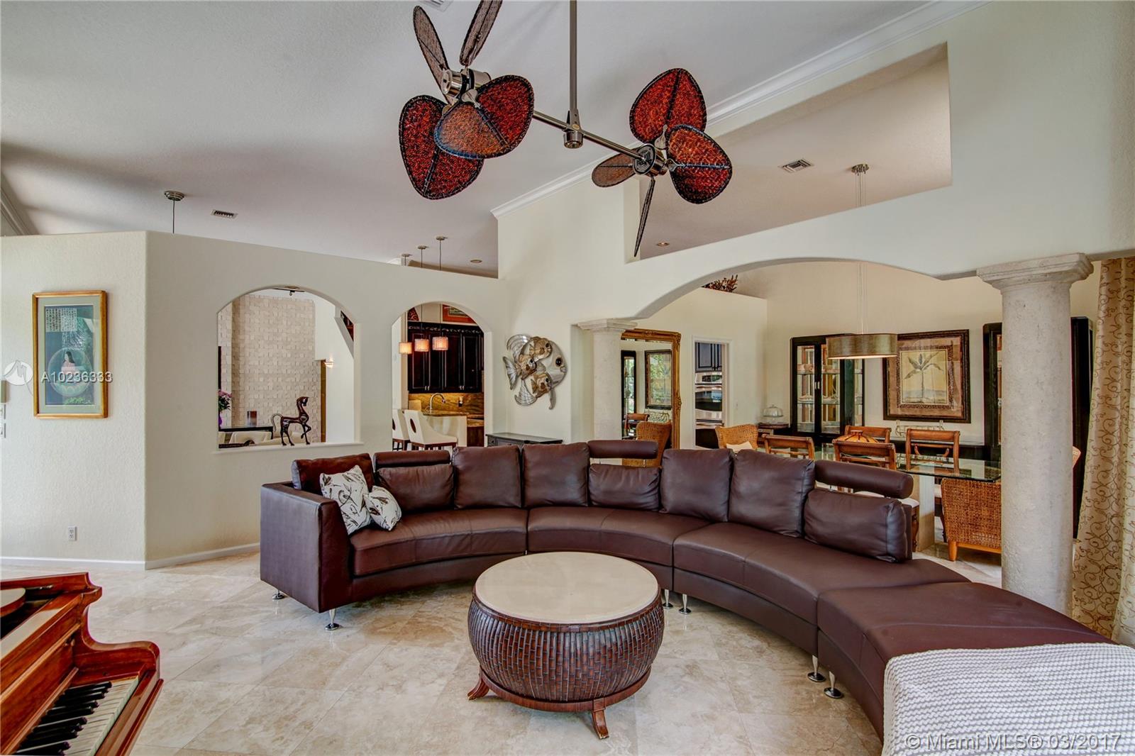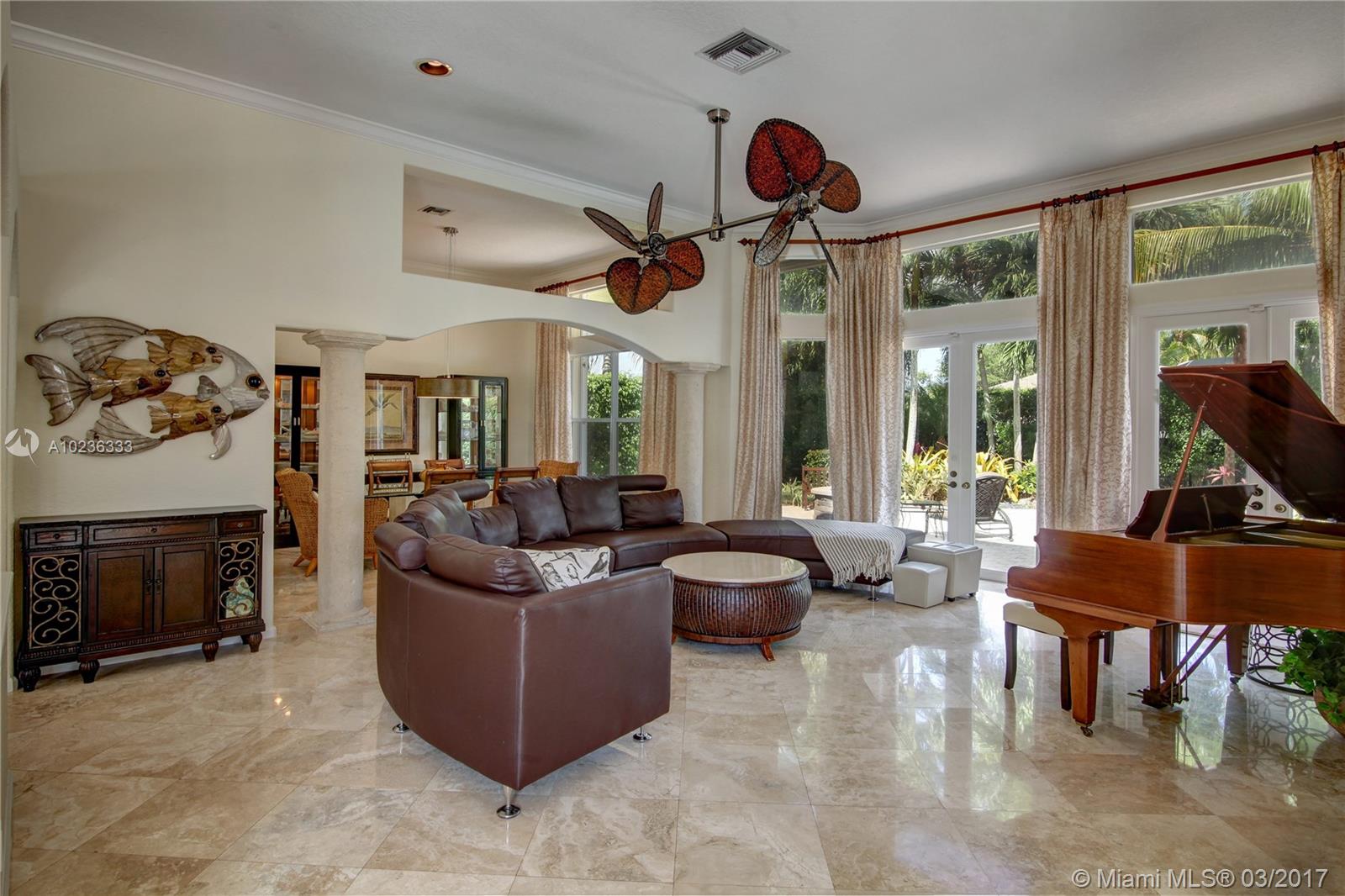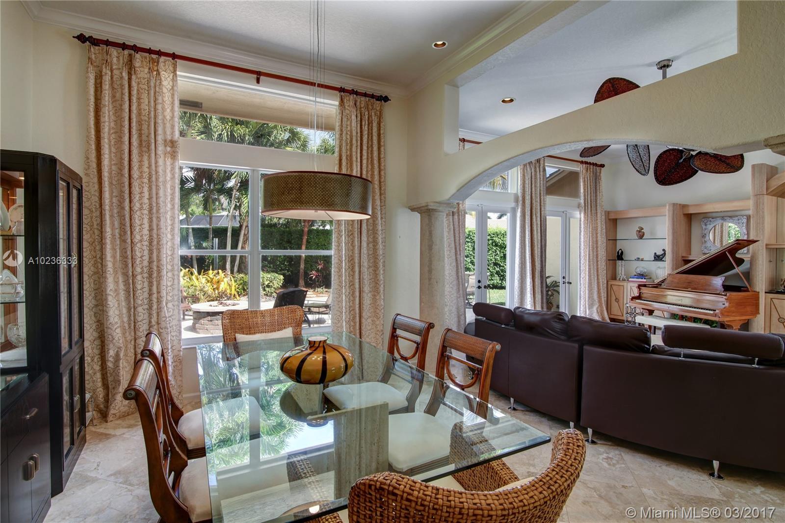 Step into this beautifully appointed Two Story COURTYARD home featuring separate Guest House surrounded by serene Saltwater Pool and Travertine Patio area with Summer Kitchen. Master Bedroom and 2 additional Bedrooms on the ground level PLUS 3 Bedrooms on second level. Updated Kitchen, High Gloss Marble Flooring in living areas and Limestone Feature Wall with Ethanol Fireplace. Expansive Back Yard complete with Fire Pit makes this a perfect home for Entertaining and Enjoying South Florida living.