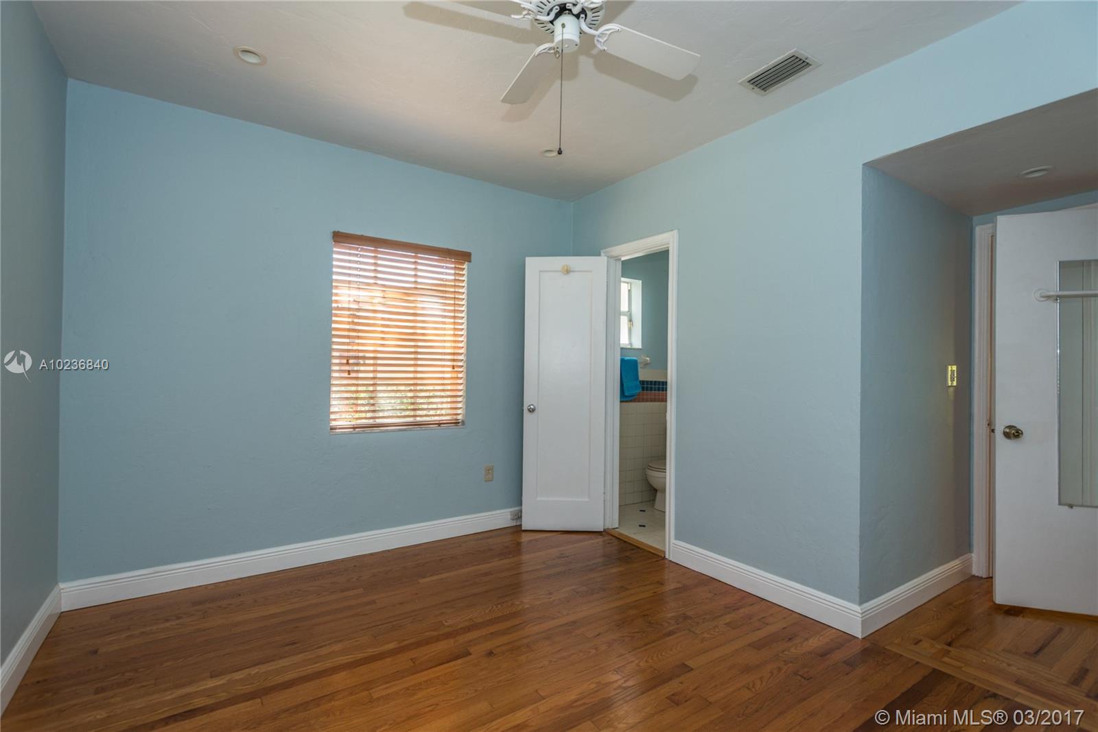 N. Gables gem on quiet & picturesque street, with ample L-shaped kitchen, good layout, covered back patio for outdoor entertaining or overflow room for kids to play. Beautifully maintained original features i.e. hardwood floors, stone fireplace, architectural arches, high ceilings, recessed lights, 1 car garage, barrel tile roof from 2006 w/many years of life. Recent updates are new wood deck, sprinkler system w/timer, new washer/dryer, recently tented, storm panels, fenced yard, alarm. Great schools!