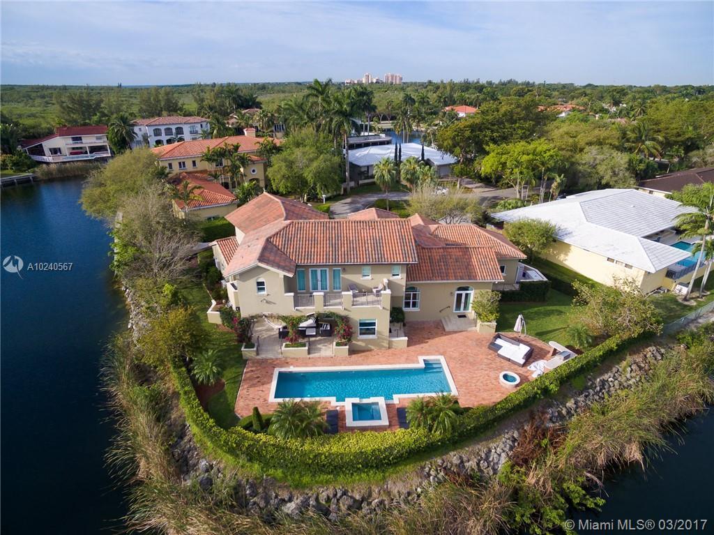 MEDITERRANEAN ESTATE. PRICE REDUCED! Breathtaking Waterfront home in gated Gables by the Sea. On cul-de-sac, oversize LOT w/ wrap around private views to the canal. Features a charming courtyard entrance w/double doors that lead to vaulted foyer, Formal Dining room, Living room w/water views. Updated kitchen w/granite countertops, SS appliances and breakfast overlooking pool & canal. Beautiful pool/patio area w/ summer kitchen great for entertainment. Close proximity to excellent private & public schools.