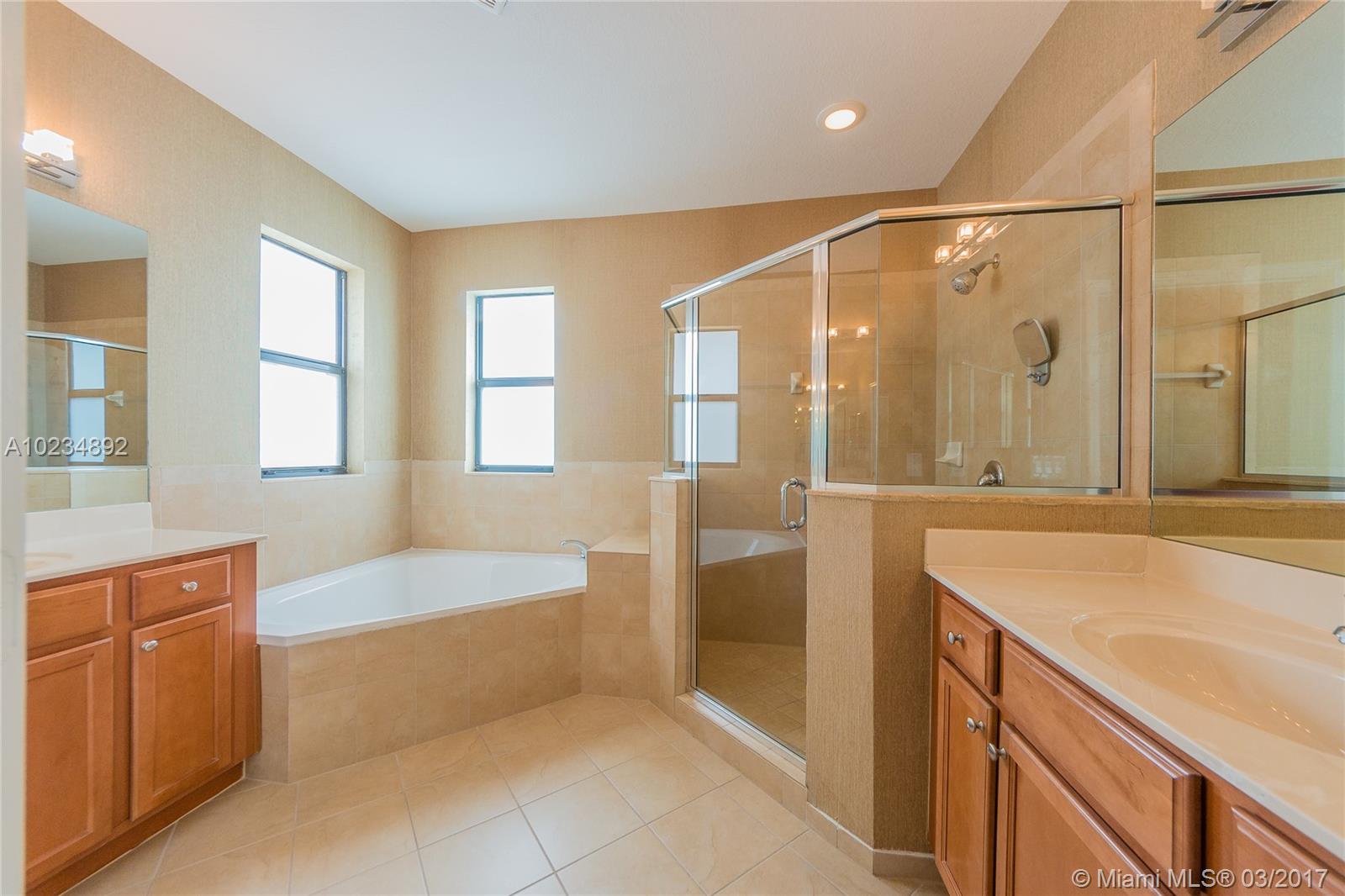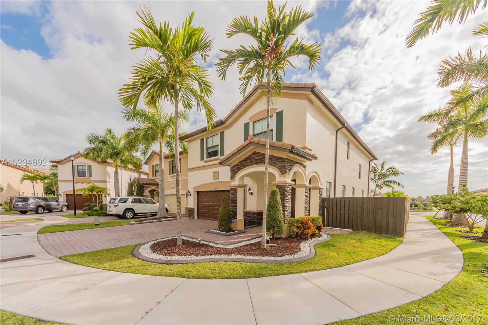 Spectacular Corner Unit, 5 Bedroom 4-1/2 bath 2-car garage, Elegantly designed and decorated throughout with many updated features. Kitchen has stainless steel appliances, granite countertops. Tile throughout, wood staircase, plantation shutters, custom closets, Hunter Douglas/blackout shades, high-end lamps that stay with home, large patio with motorized roll-away awning, washer/dryer upstairs, Custom wall unit with flat screen TV, brick décor front entrance, pavers in driveway, Move-in Ready. Enjoy an amazing Club House at Islands of Doral plus the pool located in the community. Exercise room, Tennis & Basketball court, party rooms and much more. Check Brokers Remarks.......won't last