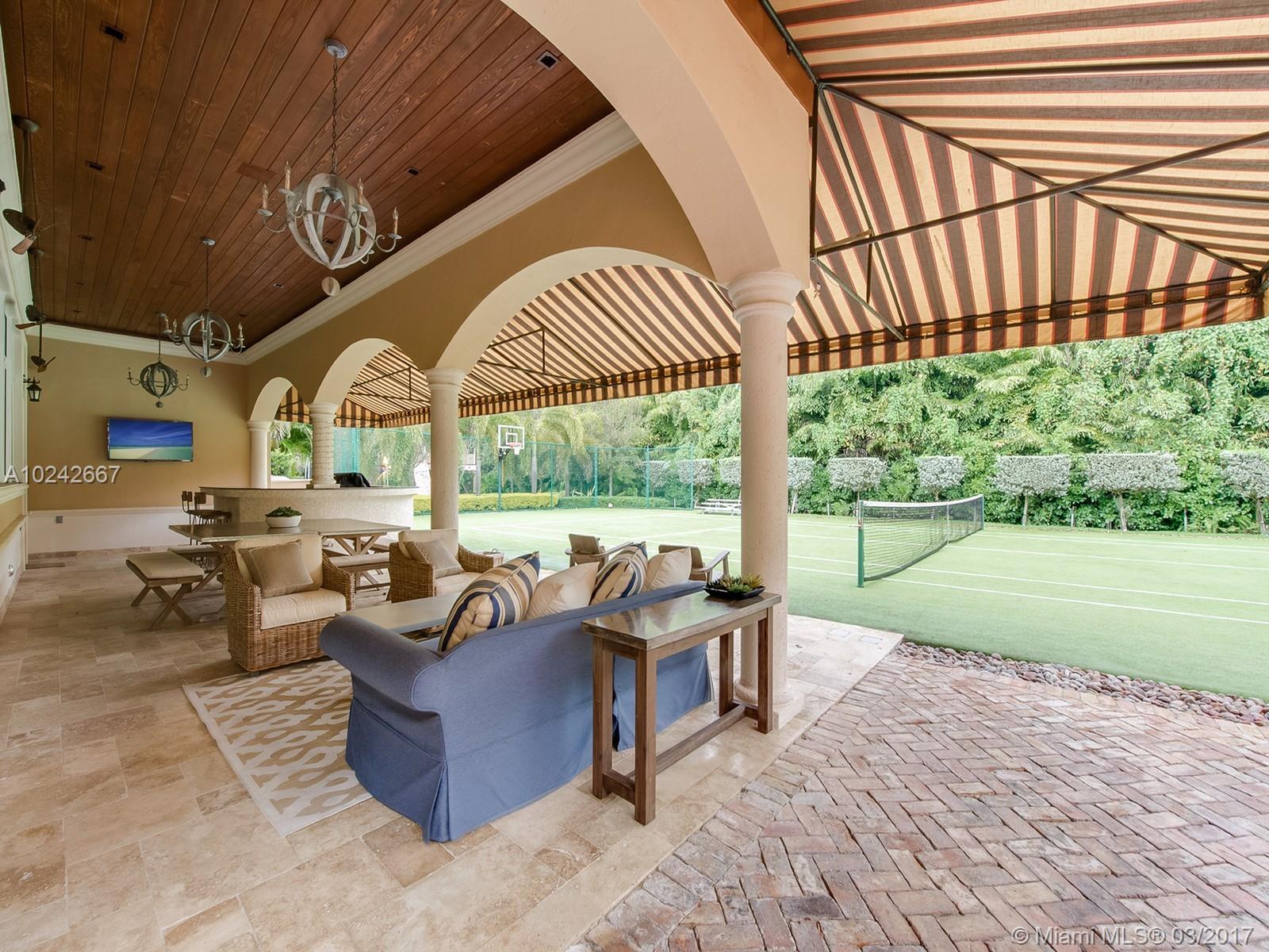This amazing Pinecrest Estate has incredible detail & quality. The 6,100 sq ft residence offers 4B/4.5B a large custom gourmet kitchen, custom built-ins, fireplaces throughout natural light pours through the home accenting vaulted ceilings, wood & marble floors. Features include a 4 car garage w/second floor lounge featuring a glass floor overlooking your garage, wine storage, bar, exceptional outdoor recreational spaces, tennis court, lush landscaping that make it perfect for both relaxing & entertaining
