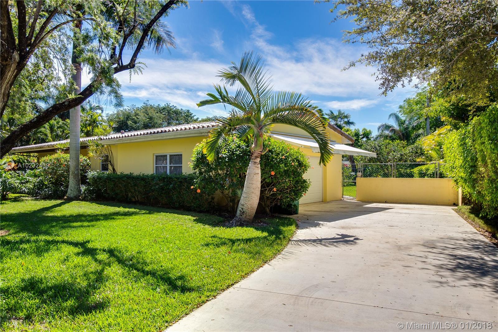 Sought after large lush corner lot property in Pinecrest. Spacious floor plan with a huge kitchen, generous sized dining & living rooms that spill into the patio courtyard surrounding the pool. This indoor/outdoor home is Florida living at it's best. A long hallway divides the bedrooms and baths are well appointed, off the living area. The master bedroom is full of light and features a double vanity. The property also features a 2 car garage, large back & side yard, fruit trees & magnificent mature trees.