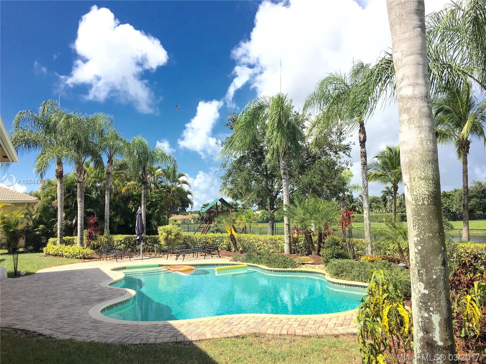 Gorgeous Pool & Canal front Family Home in exclusive Imagination Farms on quiet street. Bright open floorplan w/tons of large windows, sliding doors & high ceilings. 4 BR/3BA-1 BR used as office w/beautiful custom built-ins. Large family room w/custom wall-unit entertainment system. Updated custom kitchen w/granite countertops. Huge backyard w/resort style pool, covered patio w/paver pool deck w/seperate whirlpool spa & oversized BBQ. Professional decorator faux paint in all bathrooms & master bedroom.