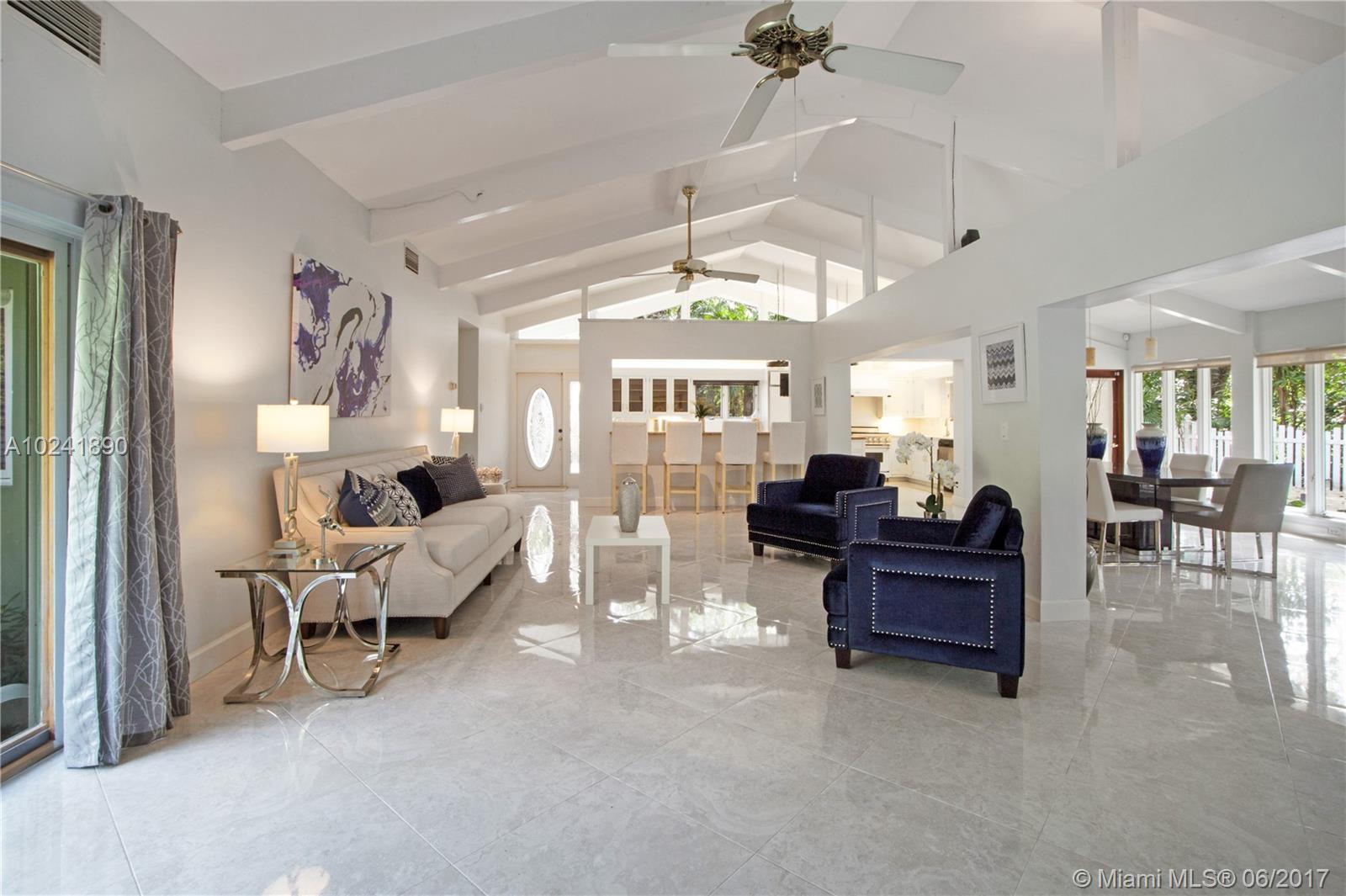 This beautifully renovated, light and bright 4BR/2BA home is move in ready! Inside features a large open floor plan, vaulted ceilings, tile and hard wood flooring throughout. Kitchen with updated cabinetry, center island, stainless appliances and granite counter tops. Modern updated bathrooms and huge indoor laundry center. Outside you can enjoy the mature oak canopy and tropical Florida landscape from your oversized yard, patio or deck. Very quiet street. Perfect for entertaining family and friends.