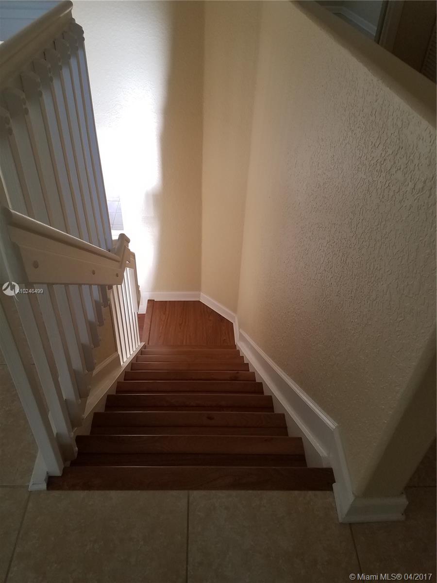 Absolutely beautiful 3 bedroom 2.5 townhouse with a 1 car garage in immaculate condition tile floors in the entire house, wood in the stairs and shows like a model living room, dinning room, and family room, separate kitchen large patio with brick pavers, electronic retractable owning with remote control, perfect for outside parties or barbeques, 1/2 bath downstairs, tiled garage. A/C unit, washer and dryer, garbage disposal and heater are less than one year old. and everything in perfect condition.