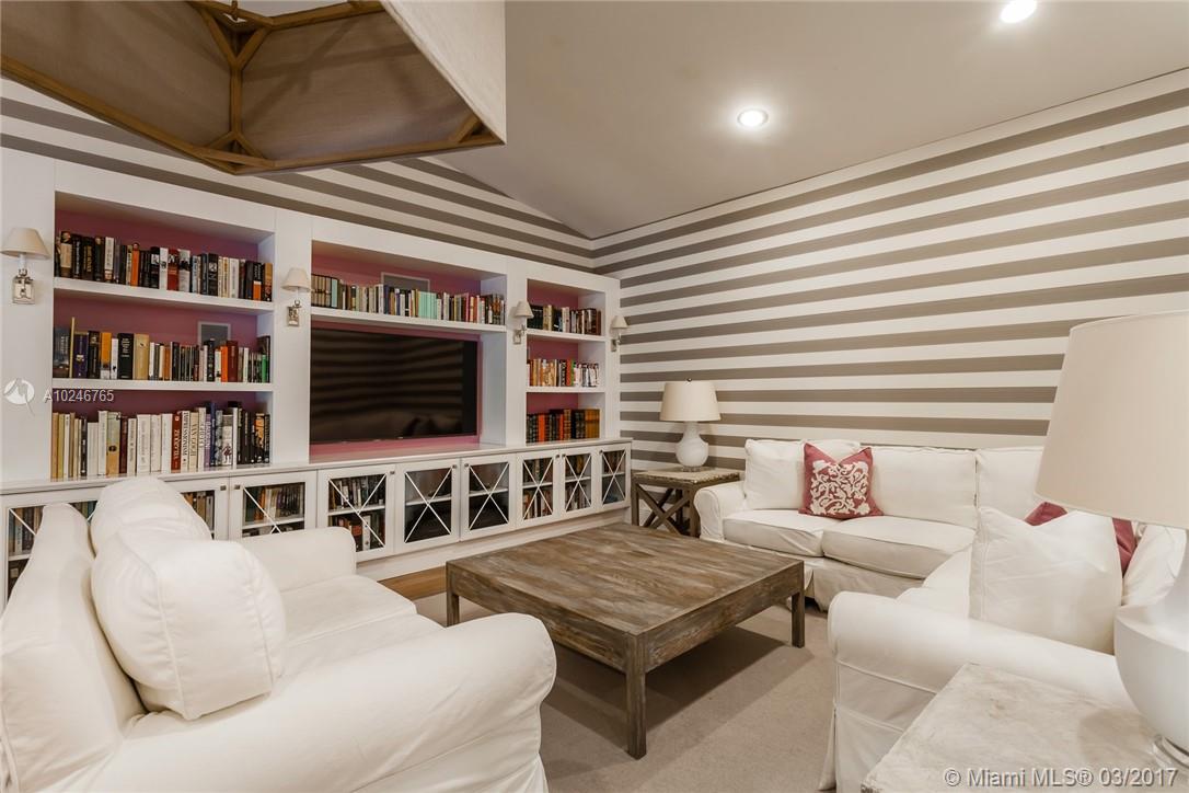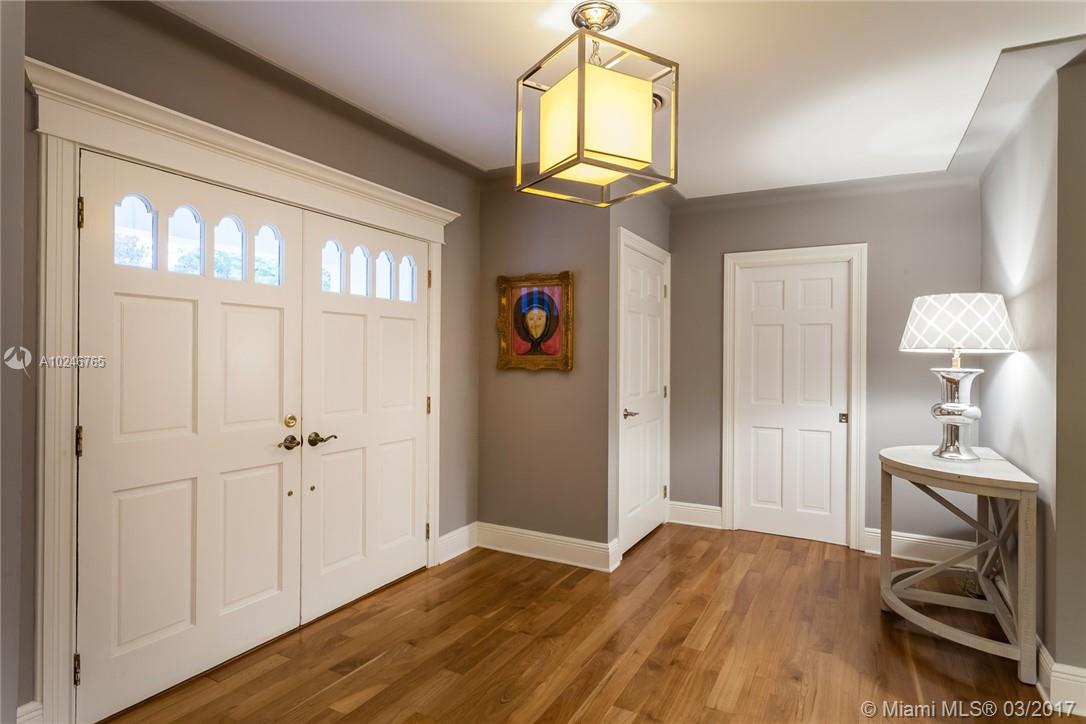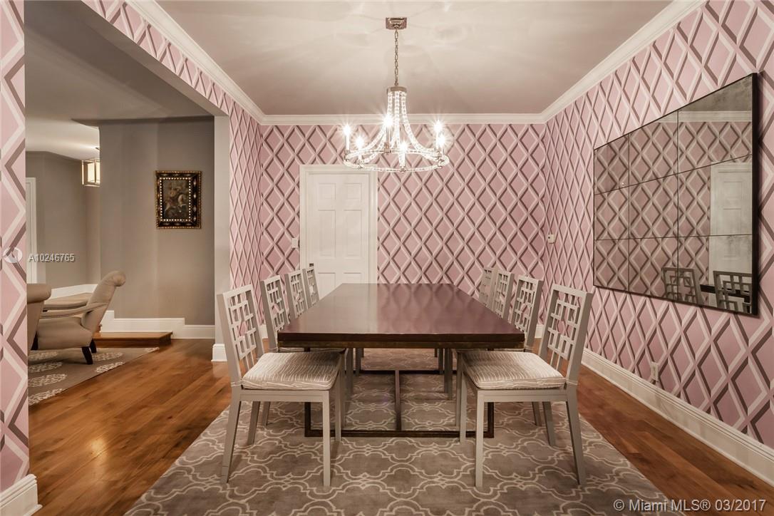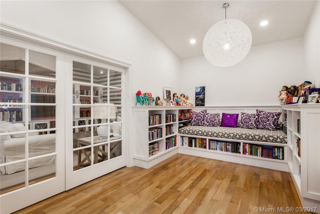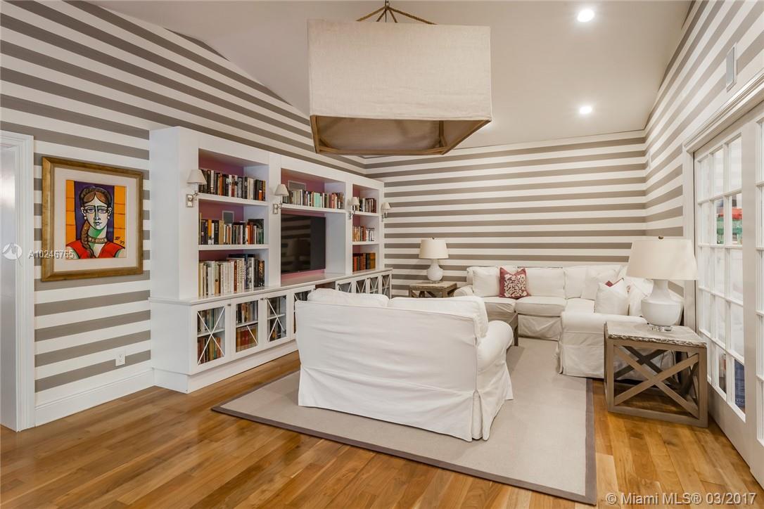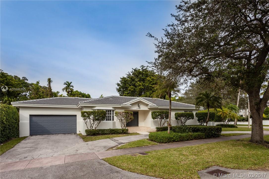 This light filled and spacious home is located in Coral Gables and features 4 bedrooms, 3 bathrooms, large living room, family room, eat-in kitchen, formal living room, two car garage, and a patio with a pool. Allowing for views of the pool are the master bedroom which has large glass windows as well as the window lined living room. The layout is fit for entertaining and lends itself to the overall open feel.