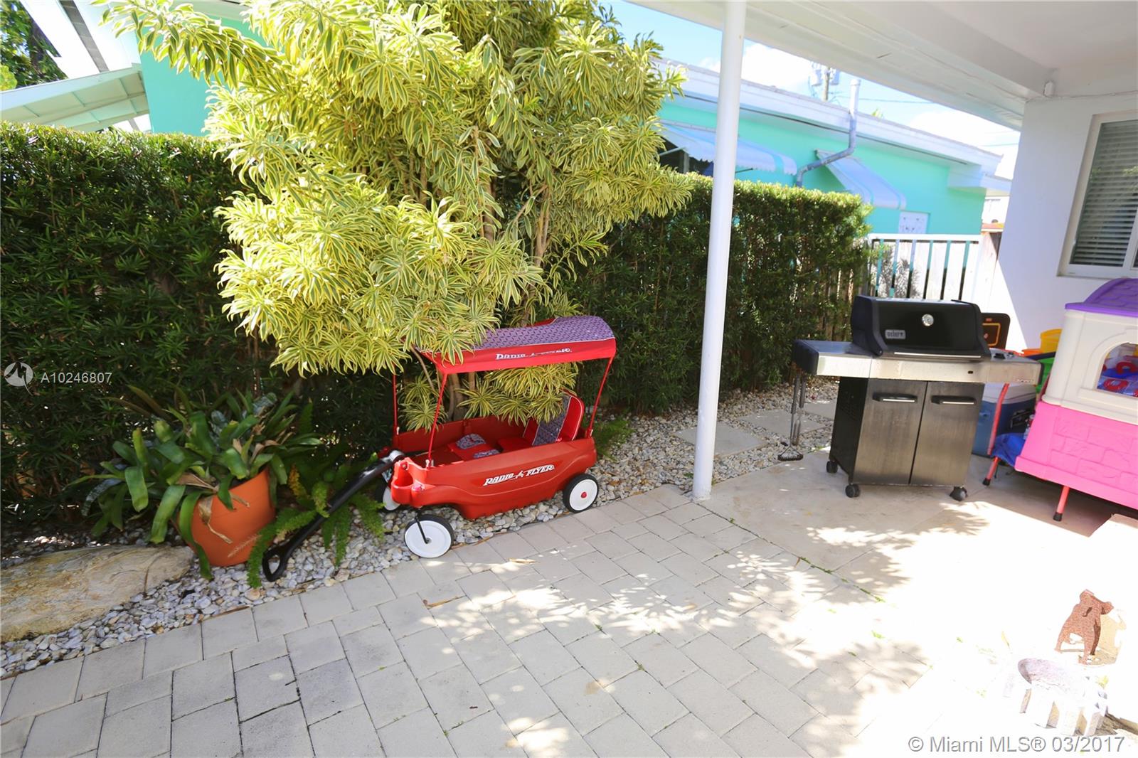 This upgraded3/2 split floor plan home has a warm, inviting vibe. The impact windows allow for tons of natural light in every room of the house. The rich wood floors flow through out. The kitchen has warm caramel colored wood cabinetry with beautiful granite tops to match. The living/dining/den area are spacious and well lit. There's a screened in covered patio area perfect for a play room. There's even a pool!! A+ school, walking distance to the beach, parks, shopping and worship. This is a MUST SEE!