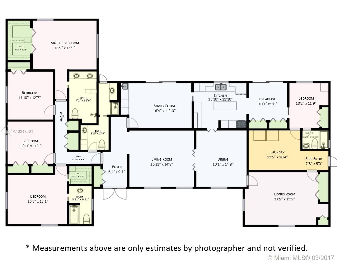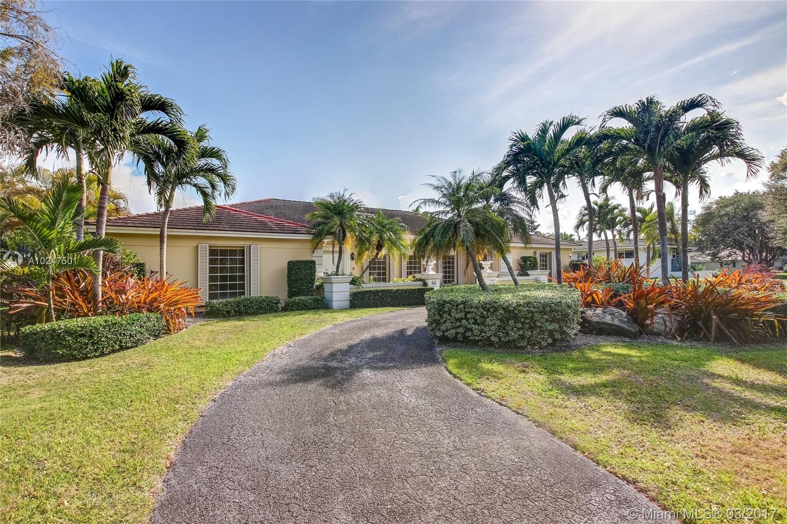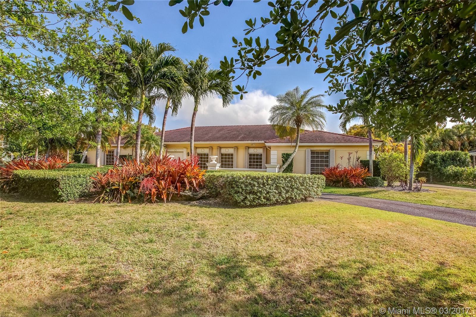Wonderful Opportunity to reside in Exclusive Walled Pine Bay Estates. 5 Bedrooms, 4 Baths, Large Windows make a Light Bright Home. Immense Covered Patio, Kitchen with Breakfast Room, Formal Living Room and Dining Room, Laundry Room, Family Room plus a Bonus Room. 1 Bed 1 Bath could be Office, Maids Qtrs. Coral Gables with Pinecrest Schools.