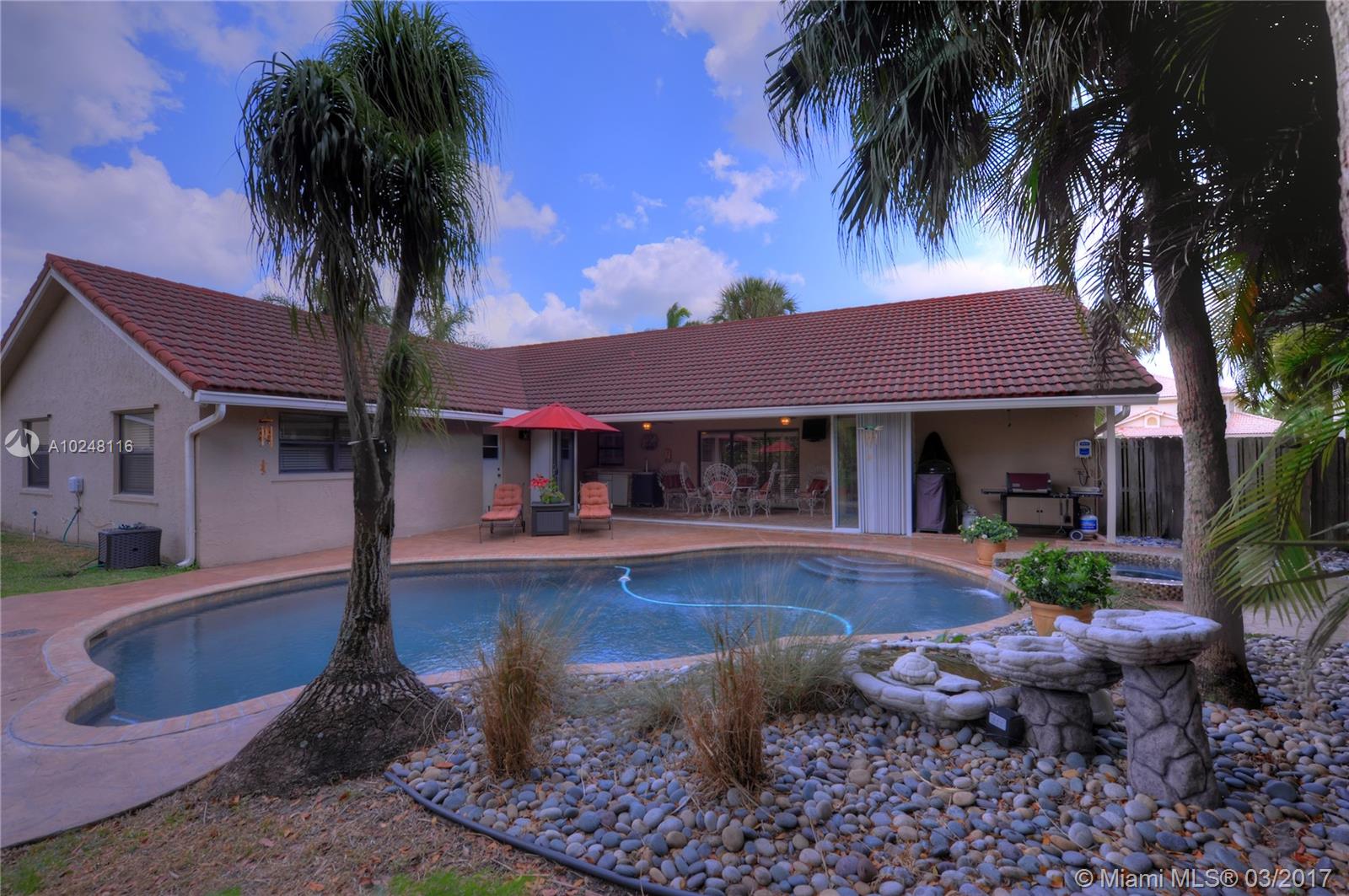 INCREDIBLE OPPORTUNITY TO OWN A BEAUTIFUL 4/2.5 ONE STORY POOL HOME IN BONAVENTURE LAKES! OPEN FLOOR PLAN IS PERFECT FOR ENTERTAINING AND SPENDING TIME WITH FAMILY! STONE-COATED STEEL ROOF WITH 50 YEAR WARRANTY (2006) AND NEWER A/C(2014)! LARGE CORNER LOT WITH BIG BACKYARD FEATURING LUSH LANDSCAPE AND HEATED/SALT WATER POOL! ENJOY A+ SCHOOLS AND FAMILY LIFESTYLE IN ONE OF WESTON'S MOST DESIRED NEIGHBORHOODS! THIS HOME WILL NOT LAST LONG! OPEN HOUSE SATURDAY 4/1/17 FROM 12-3PM!