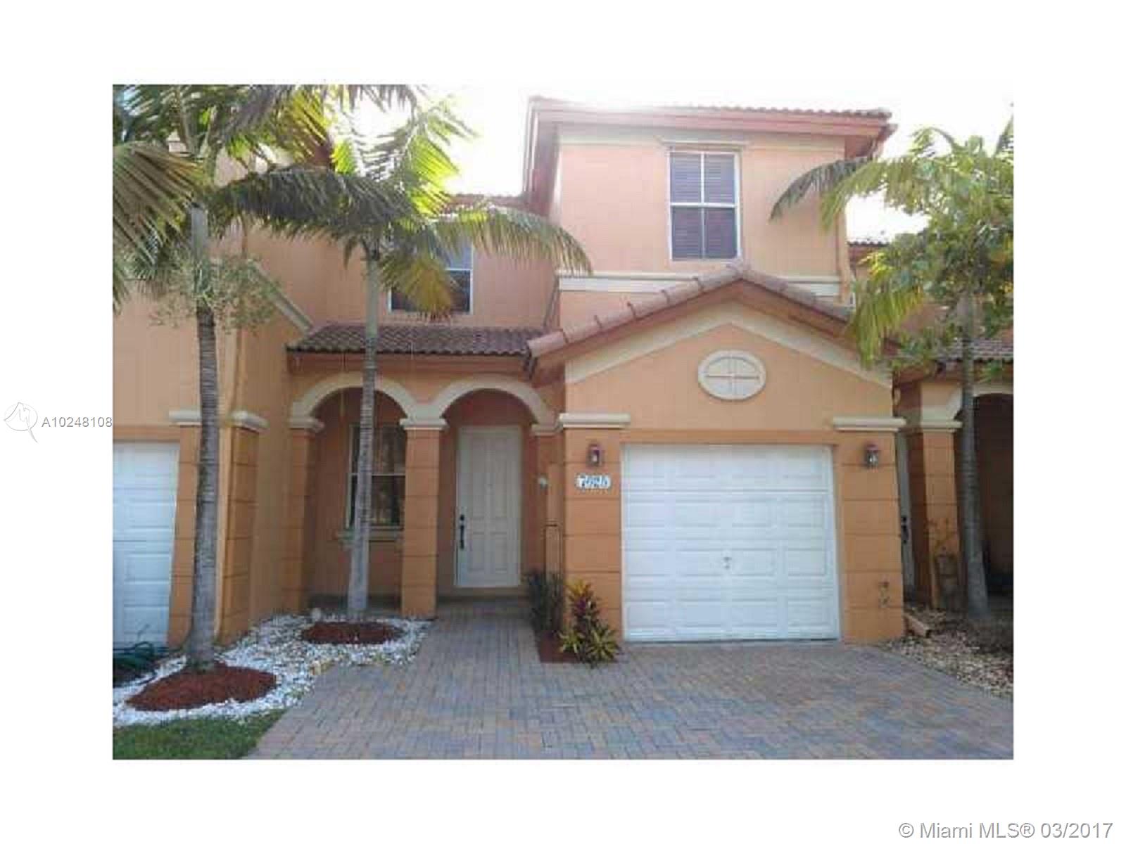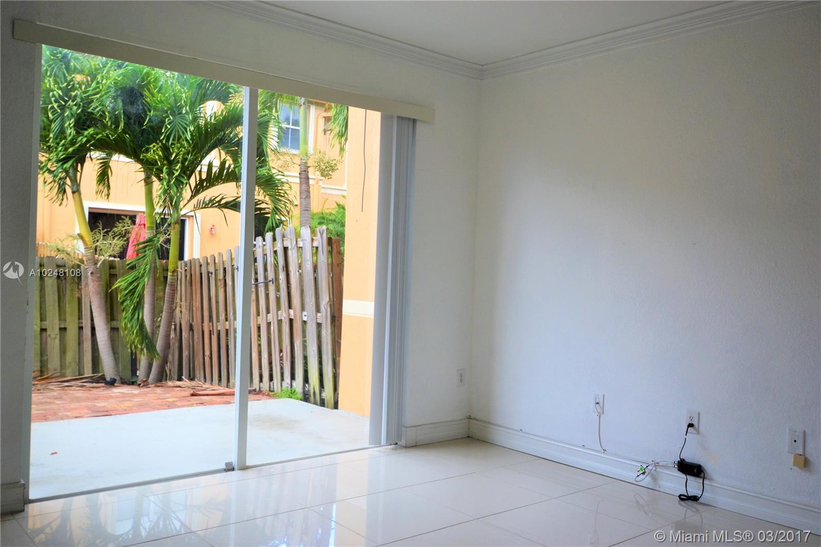 Spacious 3 bedroom/2.5 bathroom townhome in exclusive gated community. Property features all Bedrooms upstairs, fenced-in patio for entertaining, 1 car garage, with 2 additional outside parking spaces, stainless steel appliances, tile downstairs, laminate floors upstairs and accordion shutters. Clubhouse amenities include tennis courts, pool, basketball courts, playground and gym.