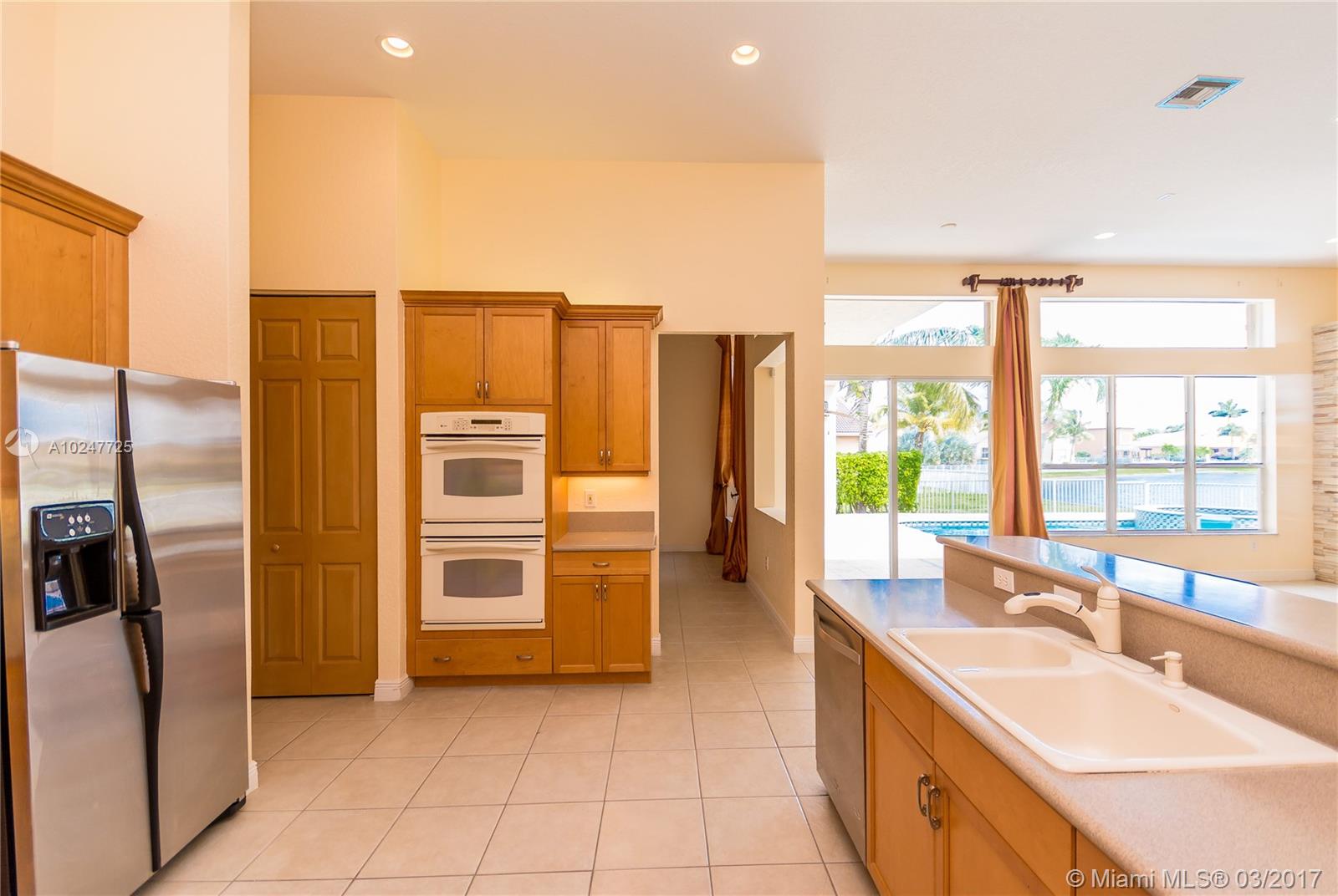 Spacious 5 beds, 3 baths pool home in the desirable Sunset Lakes community. Tile flooring throughout living area and laminate in bedrooms. Wood style kitchen cabinets with electric cooktop, double oven, and stainless steel appliances, recessed lights. Accordion shutters for insurance savings and hurricane protection, come and enjoy the sunset with a great lake view in your pool equipped with a saline system, water spouts. Water filter for the entire house, and easy to show.