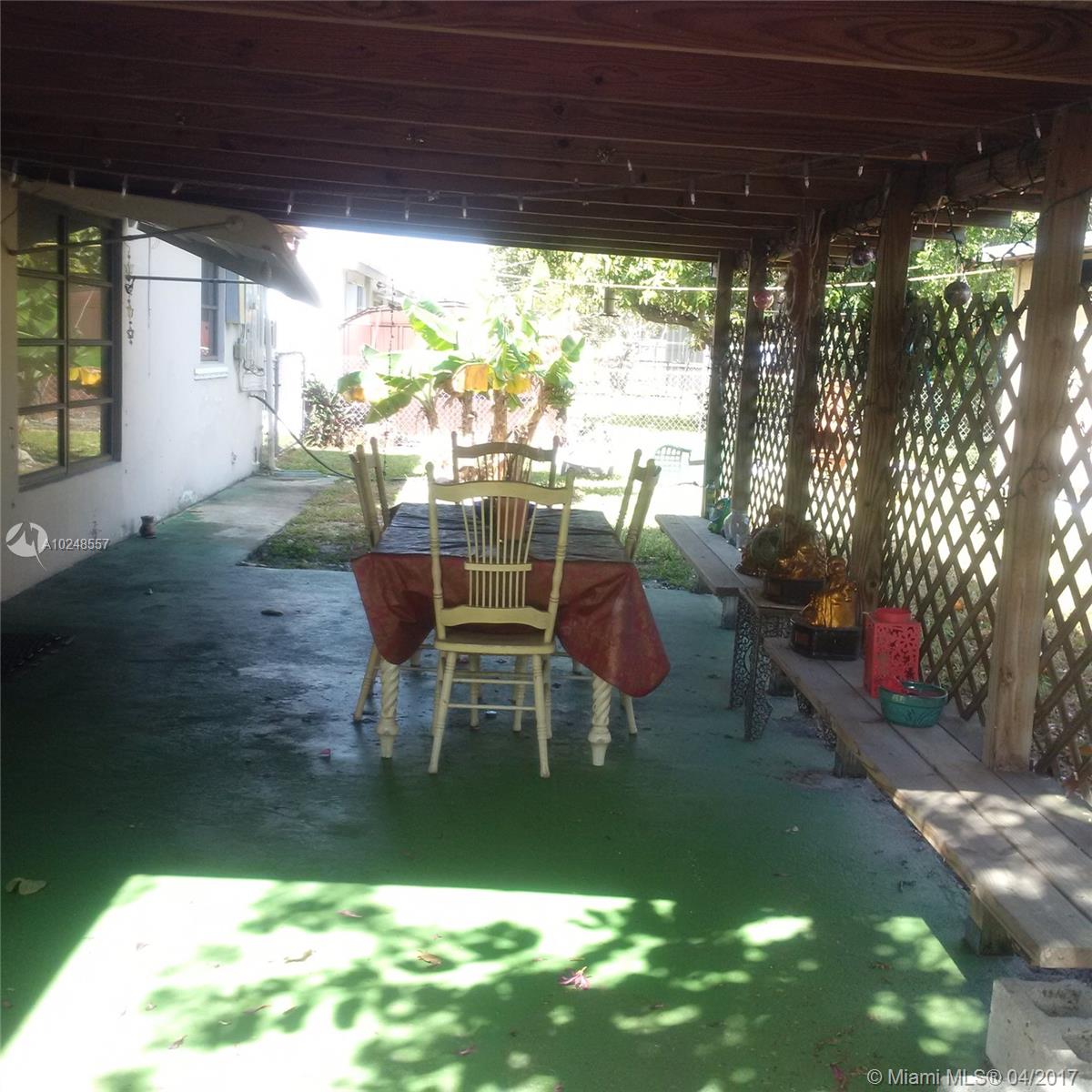 Shady & spacious '50's Hollywood home on 7,200 ft. lot. Elevated driveway leads to carport and large 1,552 sq. ft., 3/2, with fenced back and side yards, covered patio, and royal palm, bottle brush and orchid trees. This pretty property offers a very special "family home" energy, and includes original terrazzo floors, tiled bathrooms, and solid wood kitchen cabinets, with lots of windows, sliding doors from Florida room to back patio, plus a private entrance for optional "in-law" apt. The property sits elevated from the street, with several flowering and shade trees and enough fenced backyard space to add a pool past the covered patio