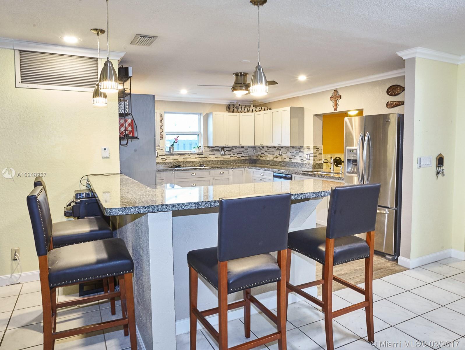 OPPORTUNITY A-GO-GO! This home delivers the OPEN SPACE CONCEPT, LRG ENTERTAINING KITCHEN & LRG BACKYARD buyers are looking for. Feat. 3 beds/2 REMODELED BATHS, family RM, covered patio, open porch, laundry room, paver circular driveway. Well planned 2017 KITCHEN that opens to the liv. area, wood cabs, NEW CALEDONIA granite, SS appliances and lots of cooking counter space. LRG open backyard designed w/ FL outdoor liv. in mind, pond w/ waterfall, herb garden, fruit trees, fire pit and fenced. ROOM FOR POOL!