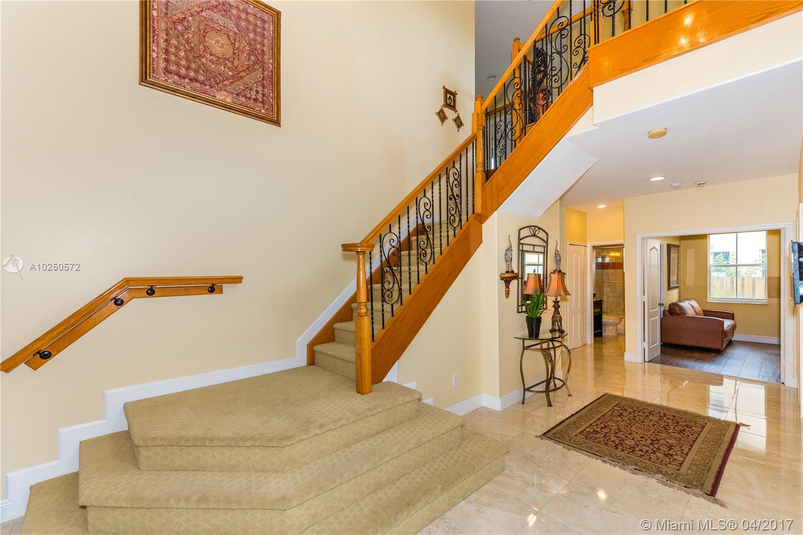 Elegant home sits on an oversized corner lot & cul-de-sac; it’s breathtaking from the minute you drive up. Step inside & you are greeted by soaring 20 ft. ceilings in the foyer & formal living room, 24”porcelain tile floors leads to the oversized family room & kitchen, with granite & SS appliances. 1 bedroom & remodeled bath on 1st floor. Go up the impressive staircase with wroth iron banister where you will find a large loft, all oversized bedrooms & baths. Custom window treatment, Accordion shutters & more...Entry & Dinning Chandeliers don't convey.