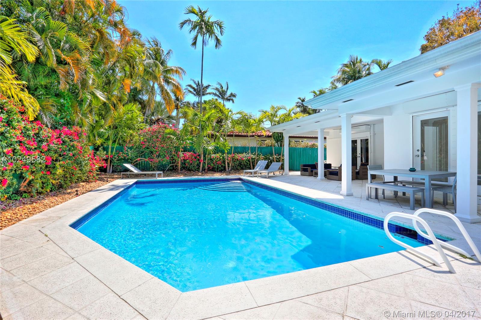 ISLAND LIVING at his best. Total charm: one story home with Elegant facade. Beautiful pool and Manicured garden area, quiet street with great curb appeal. Split plan bedrooms: Total of 5 bedrooms 4 bathrooms ( including staff quarters adjacent to Family room and kitchen) Master suite w/dressing area & updated bathroom.Family room , High ceilings in living room and dining area overlooking the pool. Covered terrace. Kitchen w/breakfast area & direct access to Pool area. Two garden areas. Electric shutters.
