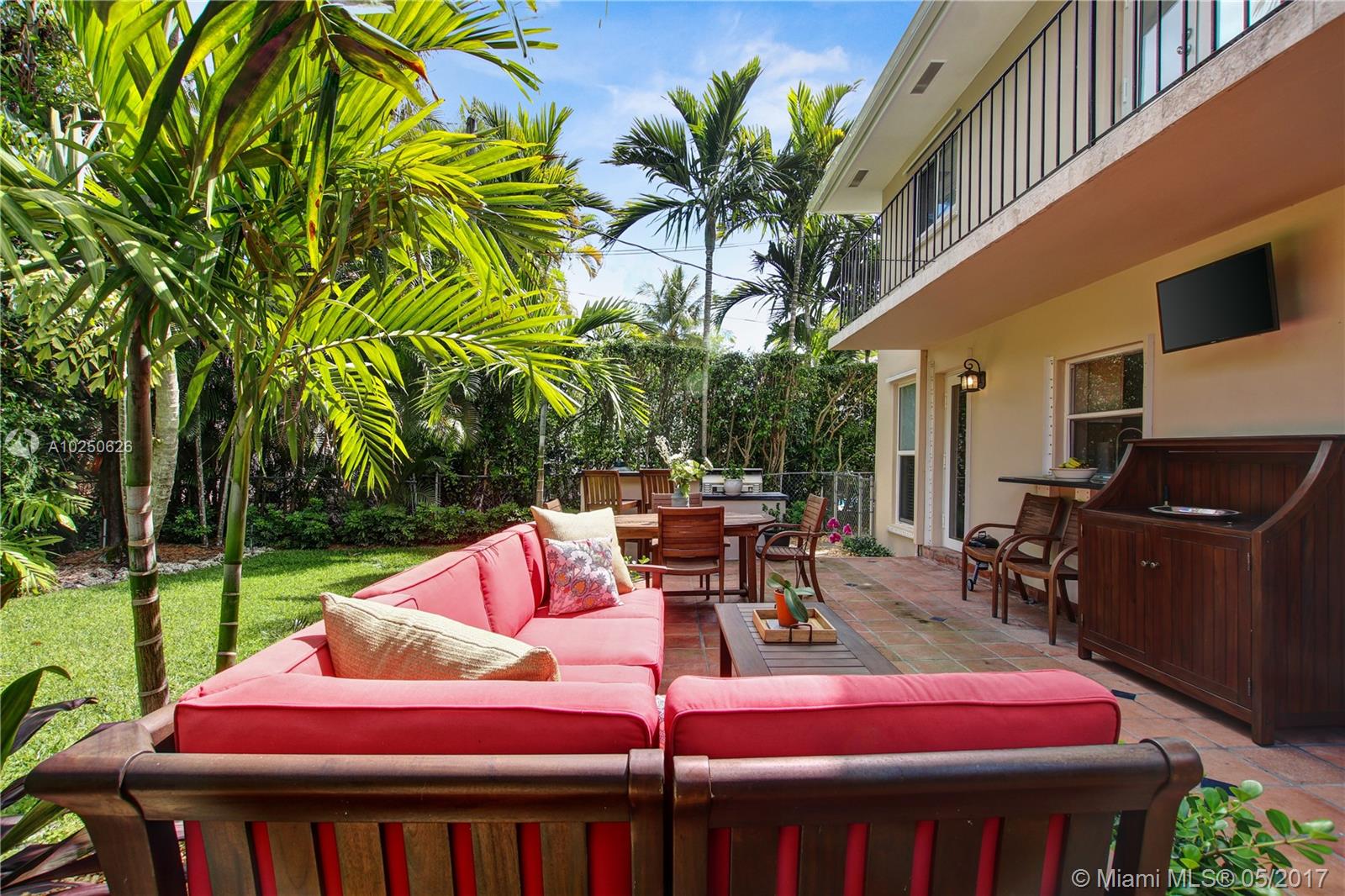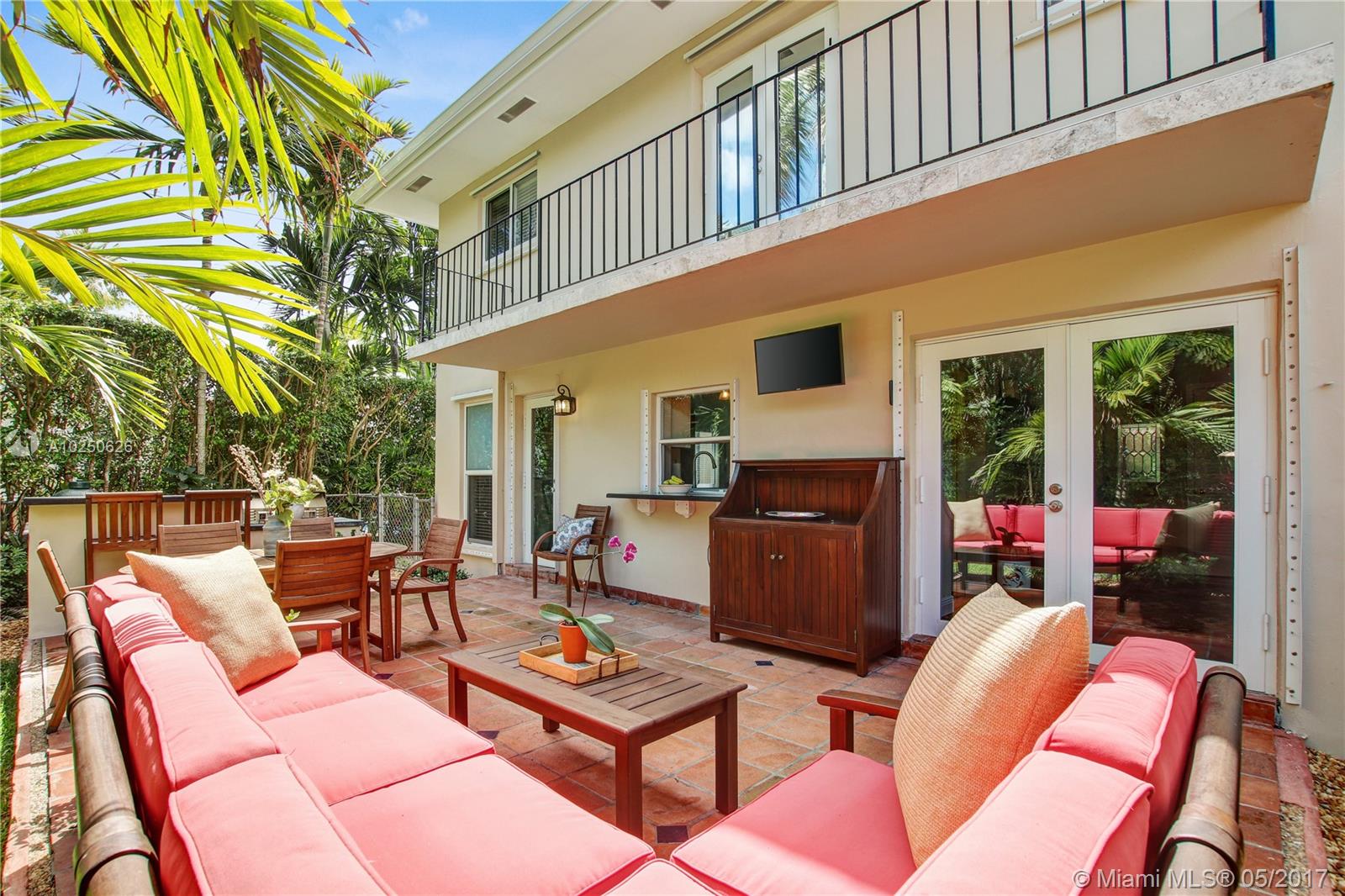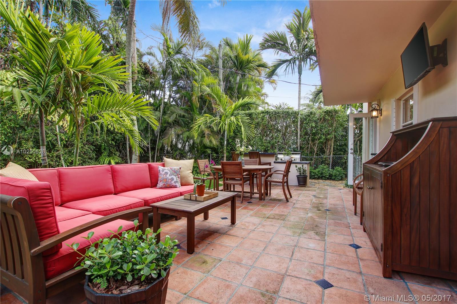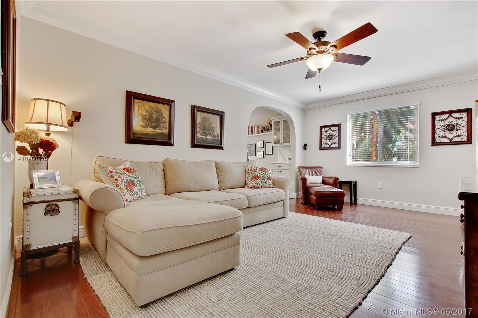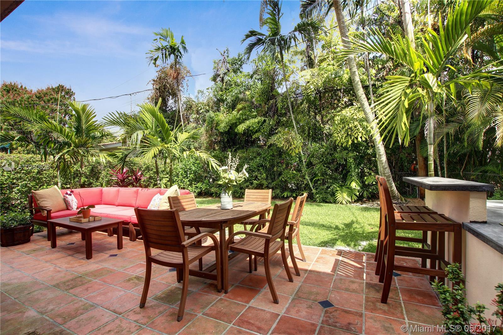 In much desirable Coral Gables, this home exudes charm & comfort with attention to details. Downstairs rooms easily transition from living room to recently remodeled kitchen to den/office & outdoor entertaining area. The fenced back patio is perfect for family fun & guests to relax w/built-in BBQ/snack bar/sitting space. The light/bright second floor features master suite w/walkin-in closet & designer bath + 2 other bdrms. Appliances including a/c, have been recently upgraded. Must see to appreciate!