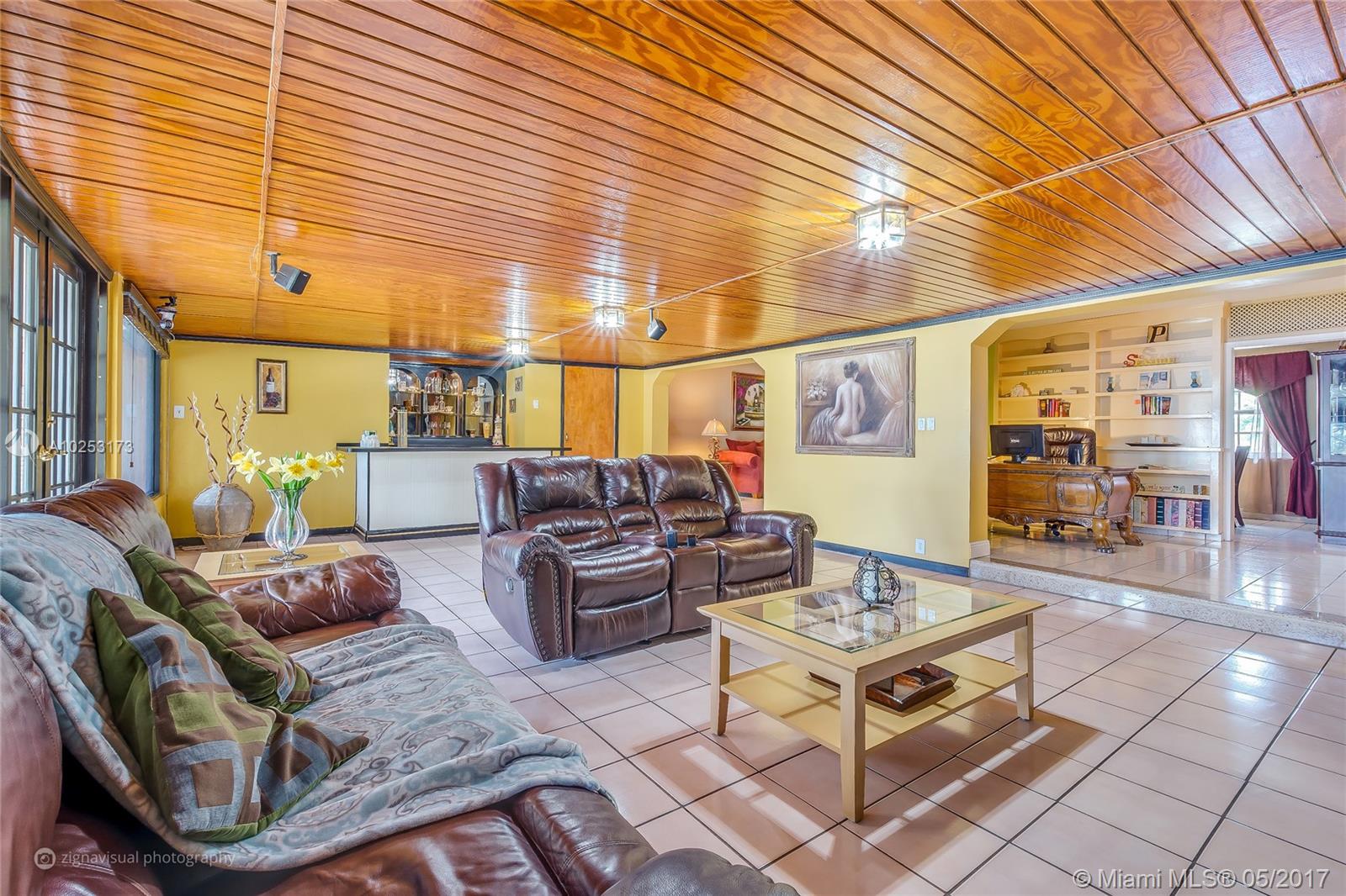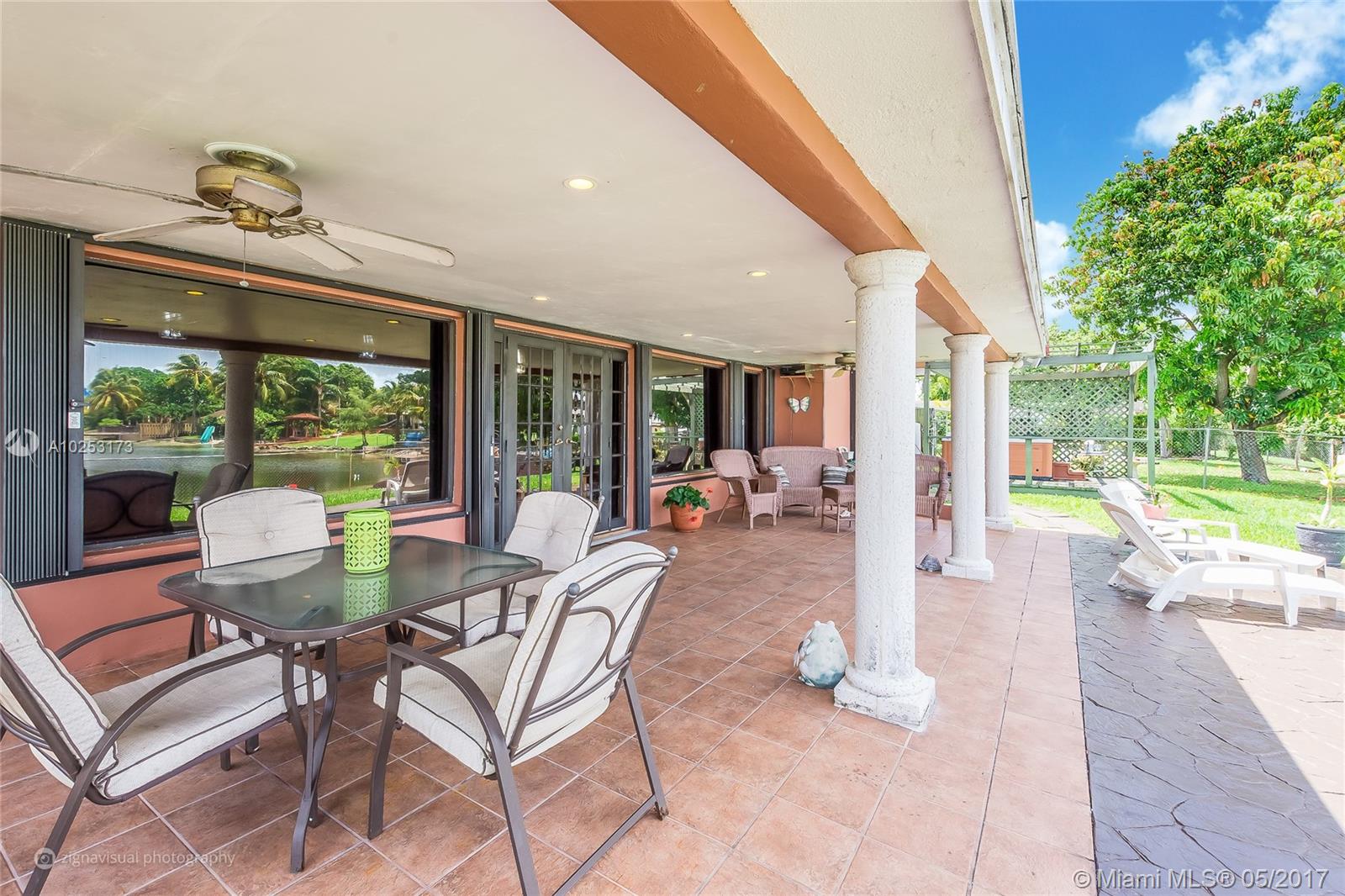 Single Family 4/2 - 2,965 SF Lake Front Home. Private Beach. Concrete Dock. Gazebo. Den / Library / Office. Bar. Large Family overlooking beach/lake. French Doors. Remodeled Kitchen & Bath. Stainless Steel Appl. Covered Terrace. Jacuzzi. Covered Car Port. Circular Drive Way. Spanish Tile Roof. Accordion Shutters. Over sized lot 10,800 SF. Close to Palmetto Expy, Hospitals, Mall, Schools. Special Features; Spacious Interior, Large Yard, Private Beach with Dock = Entertainment / Water Sports.