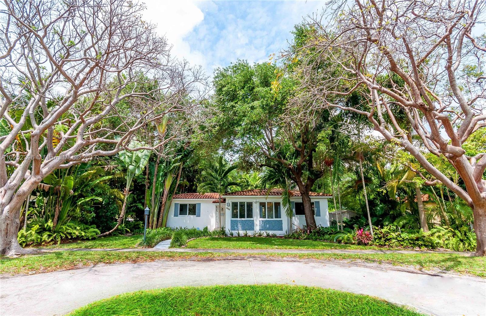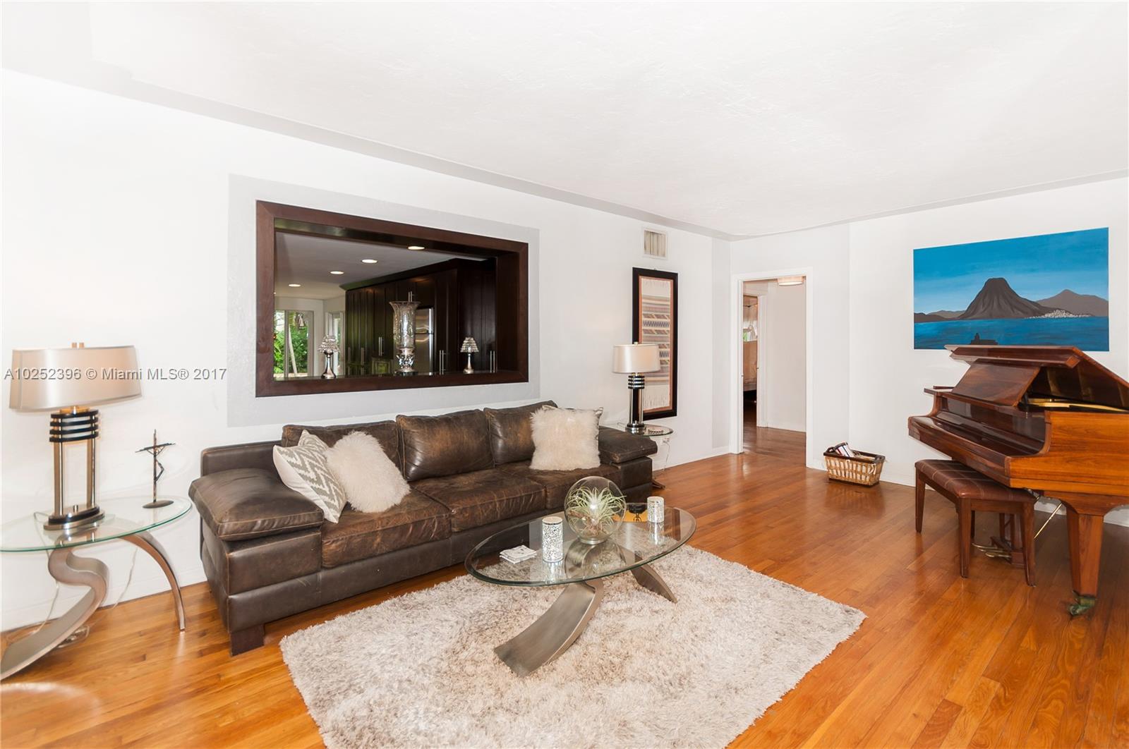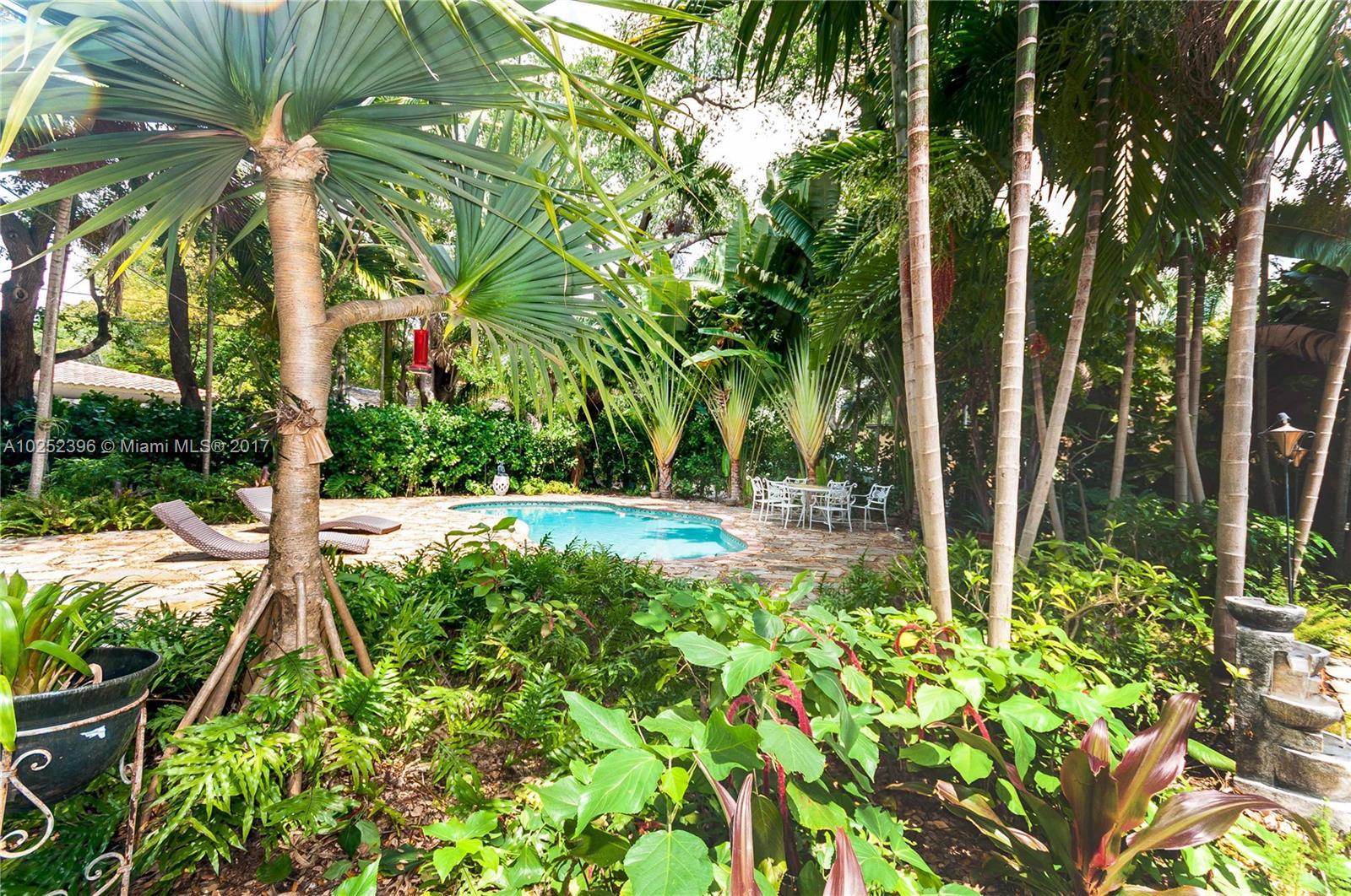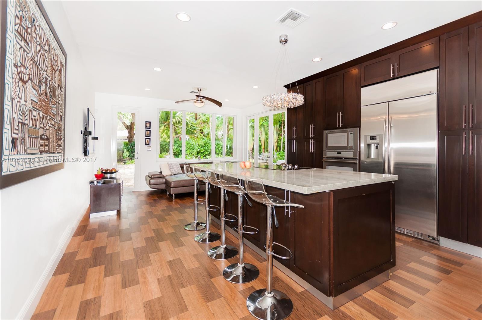 Quaint 1948 home surrounded by luscious landscaping nestled at the end of quiet cul-de-sac street. Located in the heart of Miami Shores this 3 bedrooms, 2 full bathrooms home features an open combined kitchen/family room. The modern kitchen boasts a large marble island with stainless steel appliances. This picturesque combo overlooks the spacious backyard and pool and patio ideal for entertainment with a mini outdoor kitchen, bar, and built in bbq. New hurricane impact windows. It is a must see!